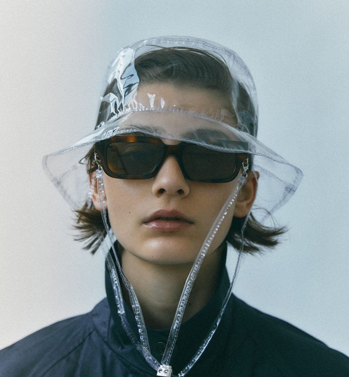 Geometry defines the Huma collection. Oversized rectangles, sharp cat eyes with flat lenses, and minimalist rounds are presented in black, tortoiseshell, ivory, and deep marine tones. The H021 became the first unisex frame, built around perfect circles and ultra flat lenses. The Tojo is a lean rectangular frame that edges toward futurism, while the Lee softens into a mask like silhouette with half moon cut outs at the temples. Each piece carries a balance between graphic form and surface finish, a discipline of proportion that makes them architectural as much as decorative.