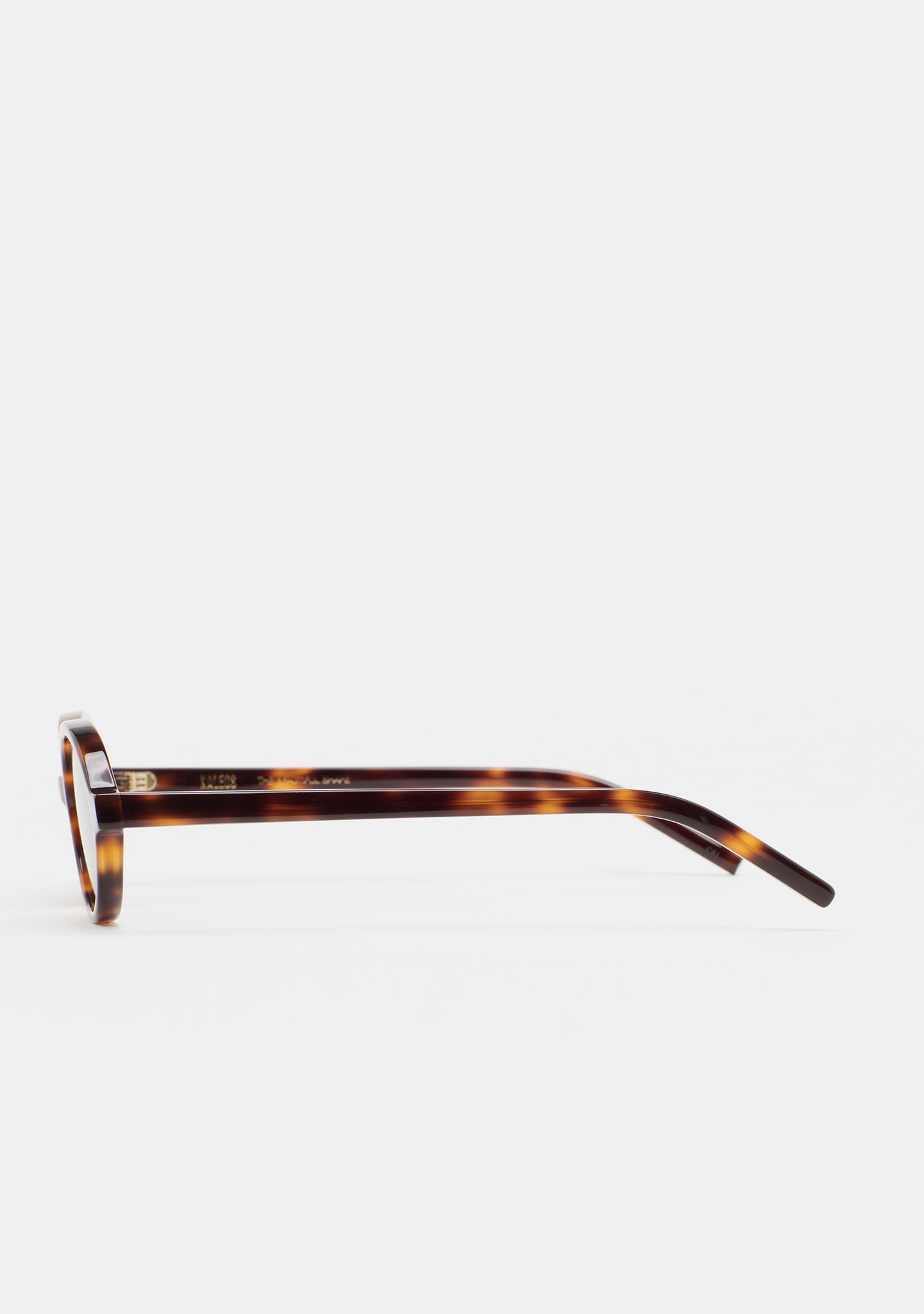 Oval-shaped sunglasses. Black acetate front and temples. Green photochromic lens, base 2, with UV protection and anti-reflective treatment. Category 1-3 lens. Integrated acetate nose pads. Handmade.