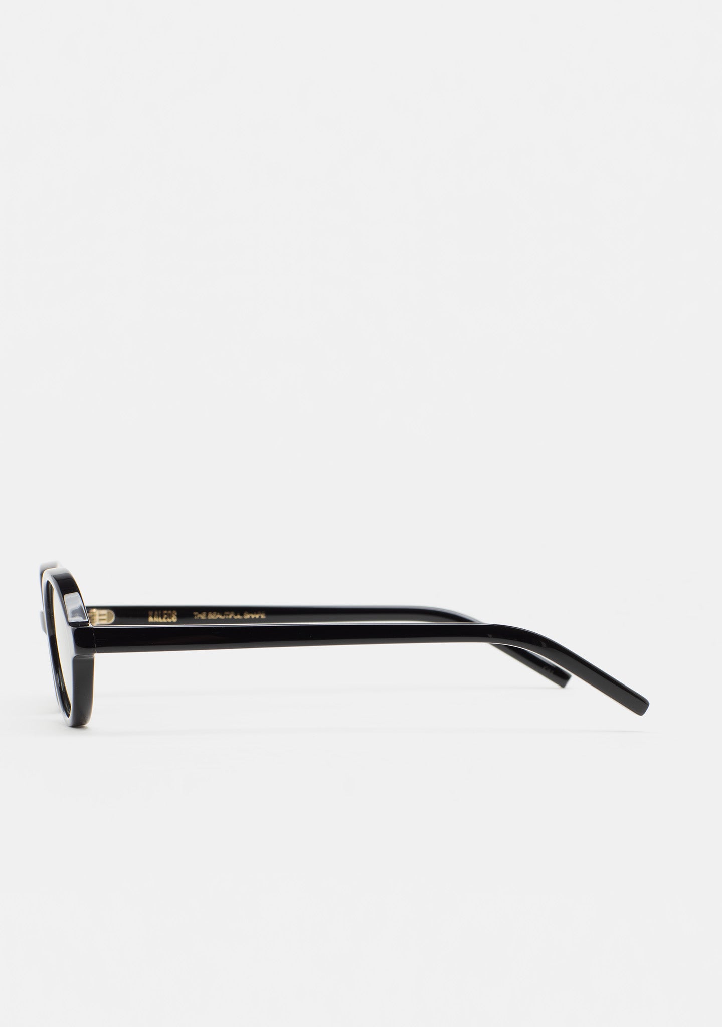 Oval-shaped sunglasses. Black acetate front and temples. Green photochromic lens, base 2, with UV protection and anti-reflective treatment. Category 1-3 lens. Integrated acetate nose pads. Handmade.