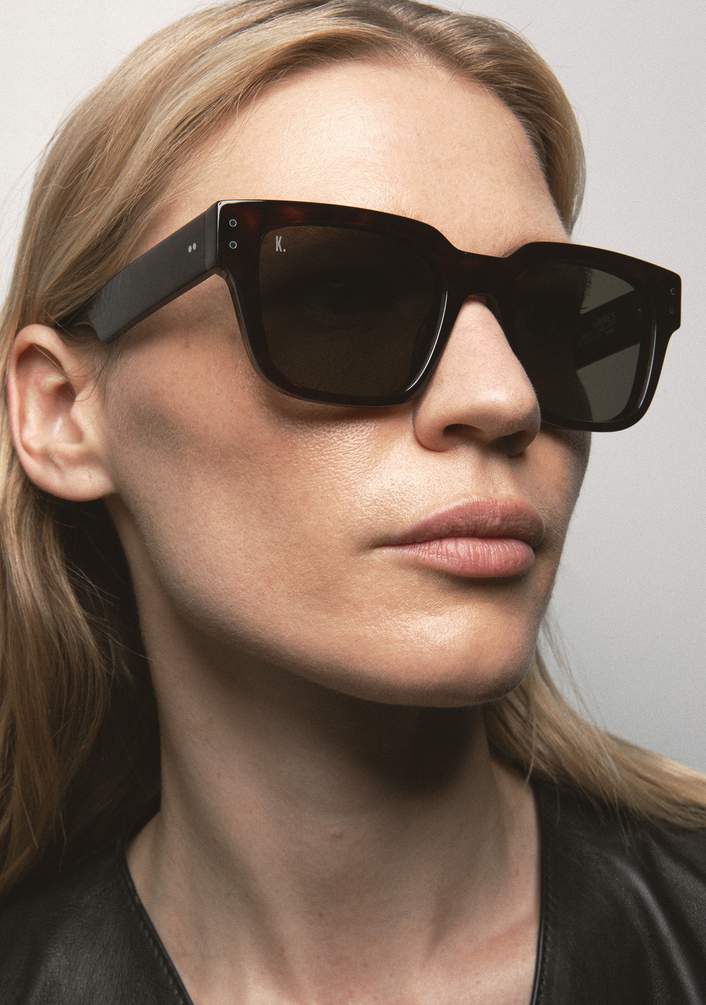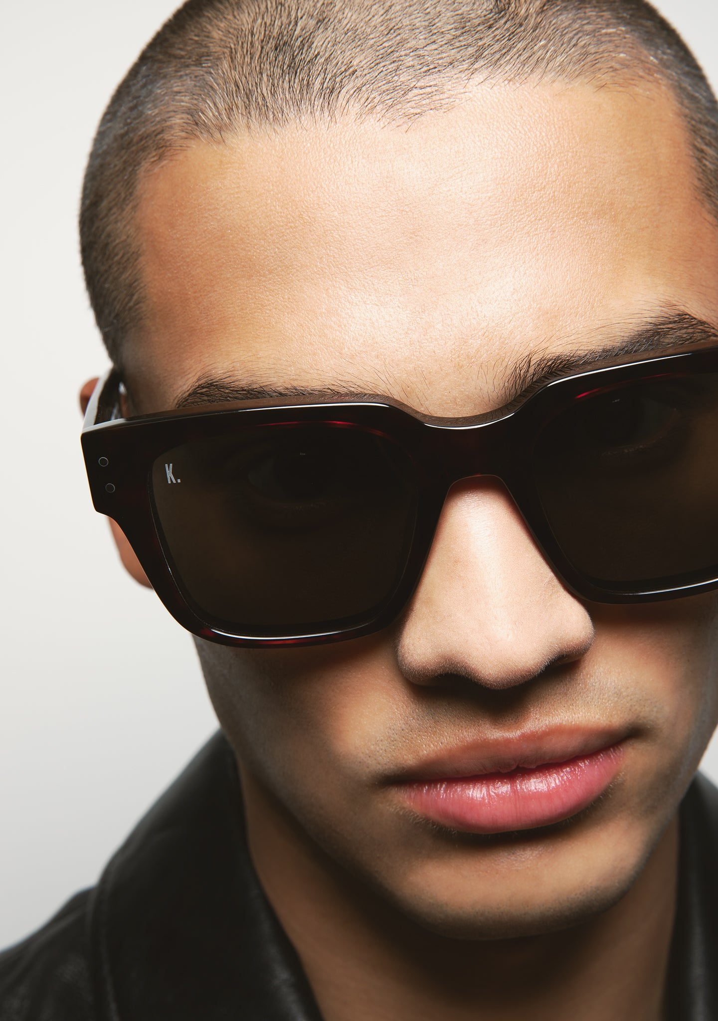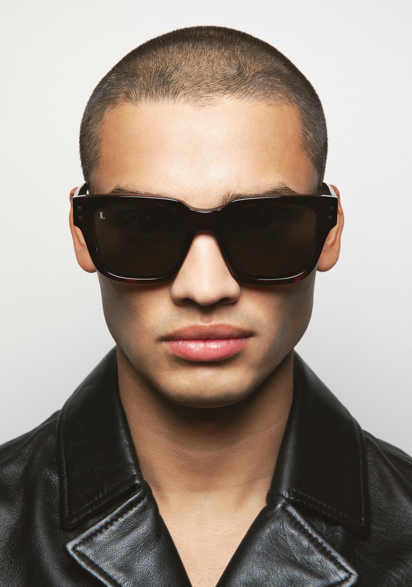 Square sunglasses. Thick acetate frame front in transparent dark green. Acetate temples in transparent dark green. Hinges with silver rivets on end elbow pieces and temples. Green gradient 2-base lenses. Category 2 lenses. Built-in acetate nose pads. Handmade.