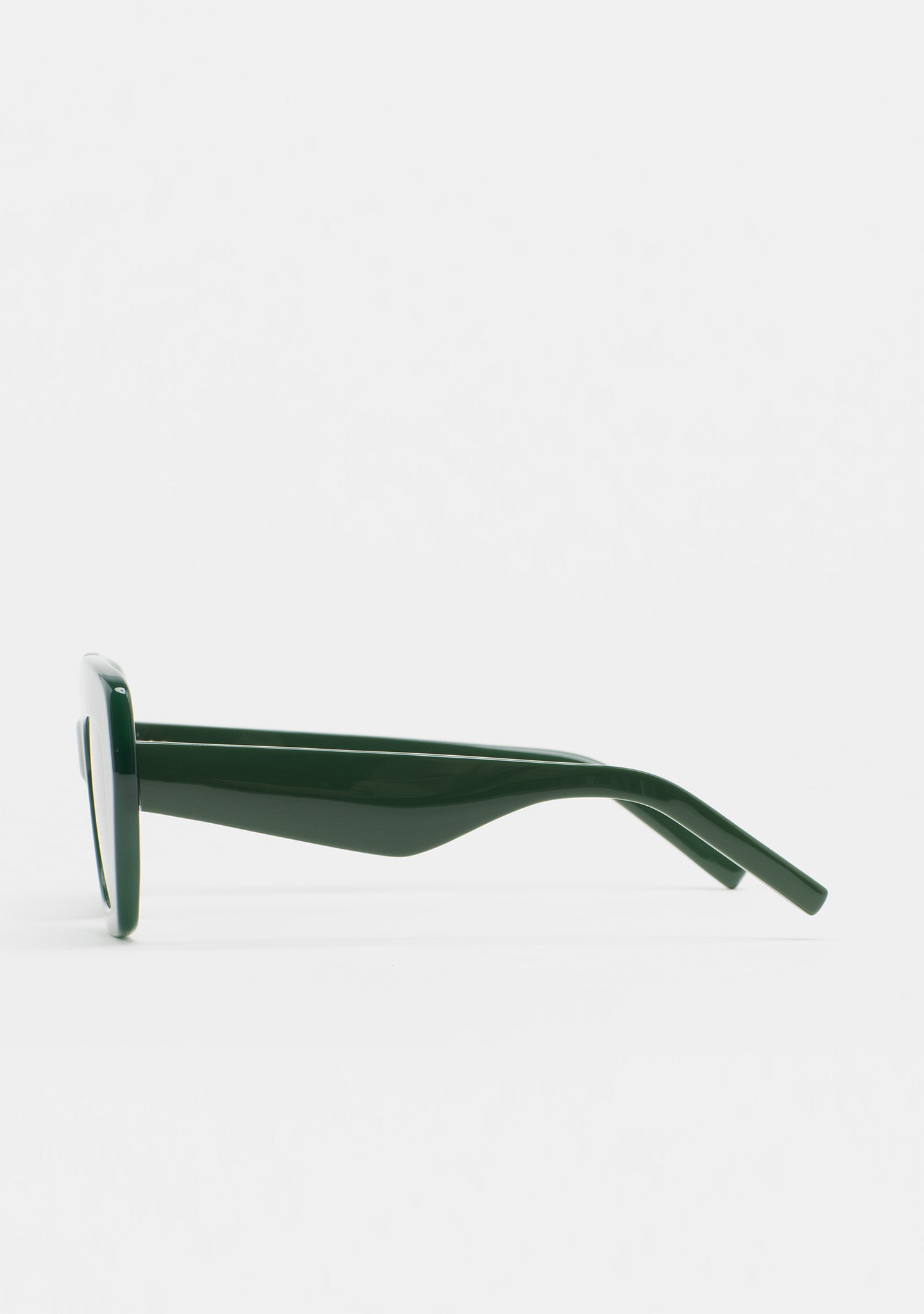 Butterfly-shaped sunglasses. Front made of black acetate and havana brown acetate temples. Grey gradient lens category 3 with base 2, 100% UV protection, and anti-reflective treatment. Integrated acetate nose pads. Handmade.
