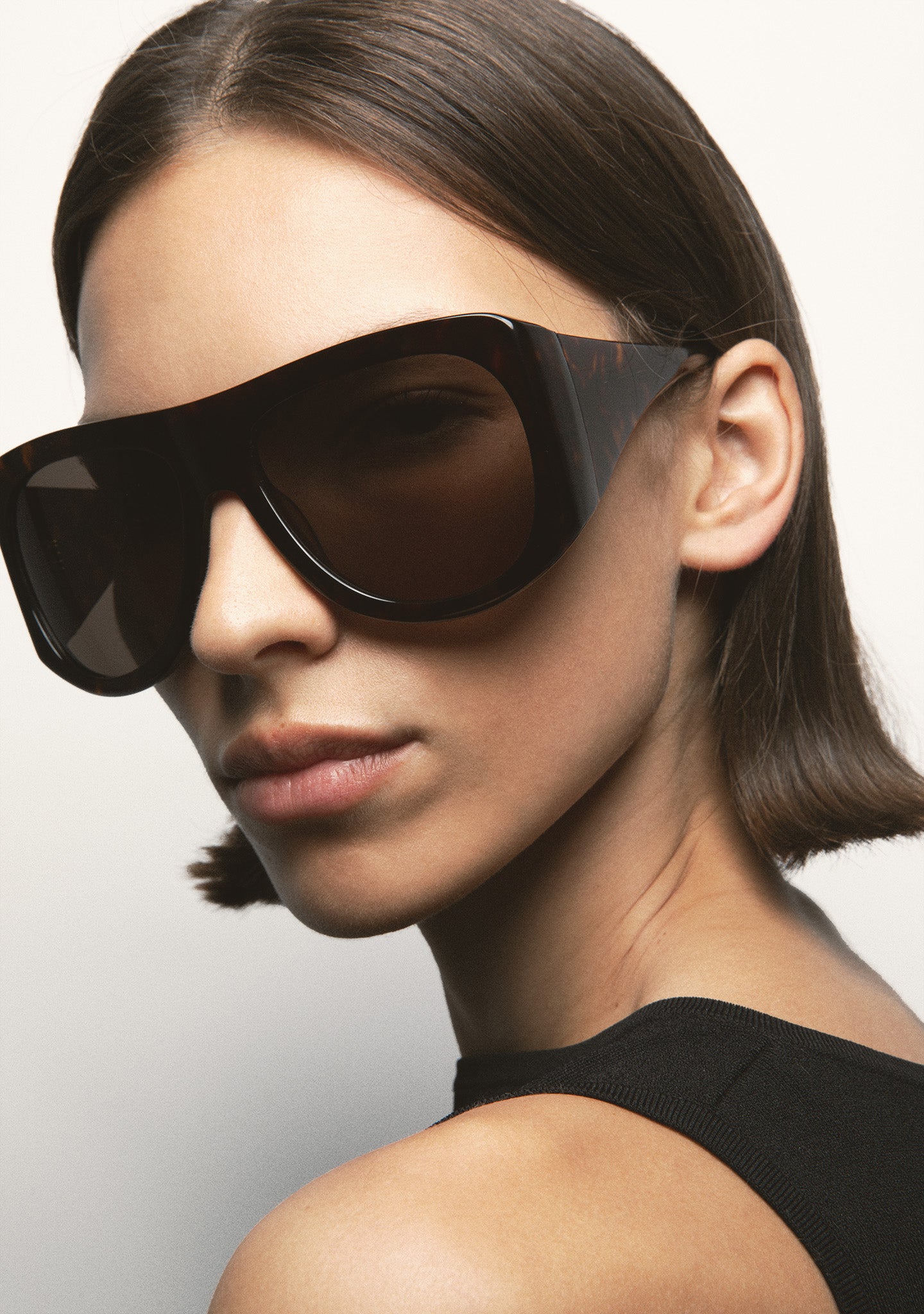Wraparound Aviator Sunglasses. Beige acetate front and temples. Grey gradient lenses with 100% UV protection and anti-reflective coating. Category 3 lenses. Integrated acetate nose pads. Handmade.