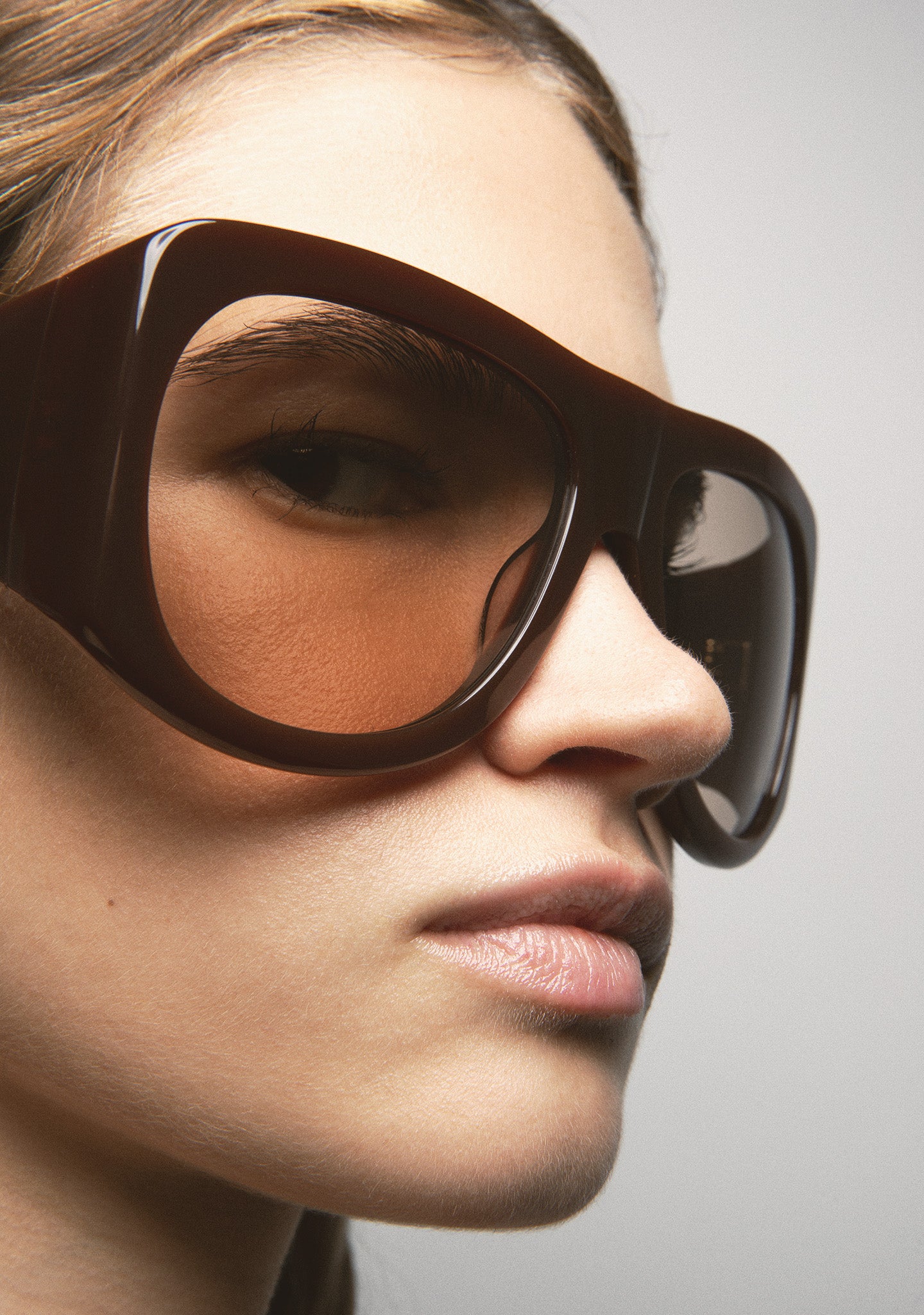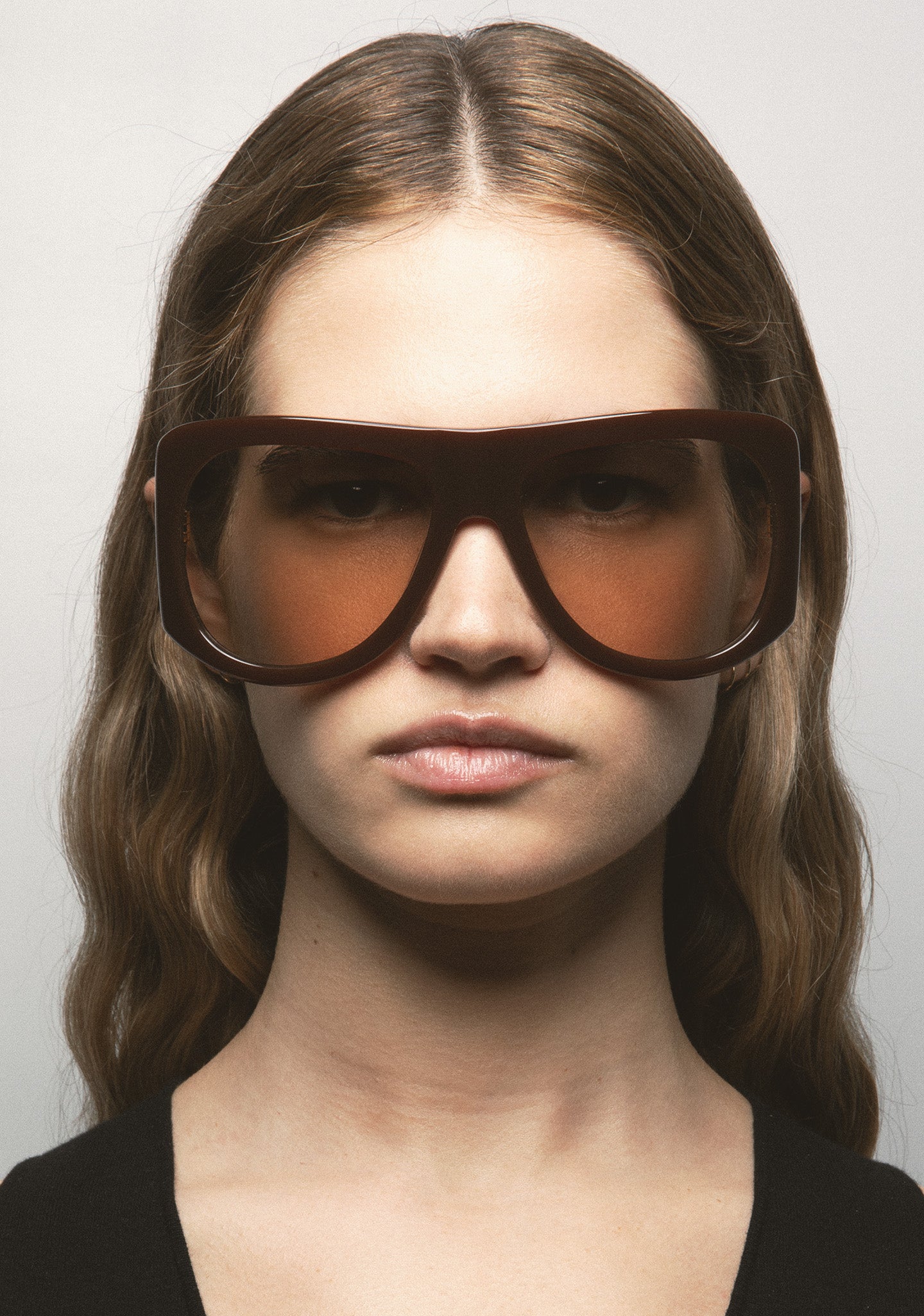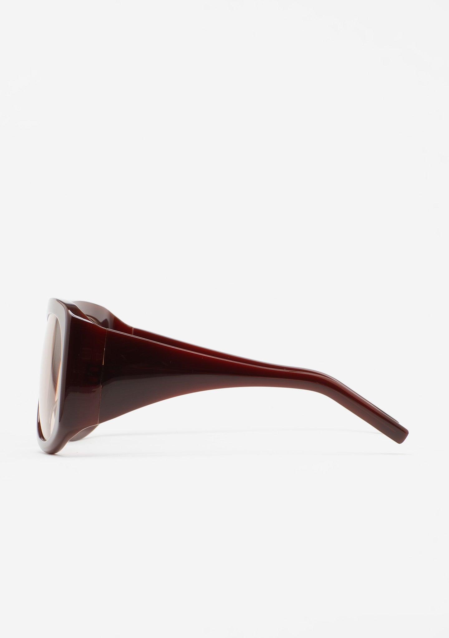 Wraparound Aviator Sunglasses. Beige acetate front and temples. Grey gradient lenses with 100% UV protection and anti-reflective coating. Category 3 lenses. Integrated acetate nose pads. Handmade.