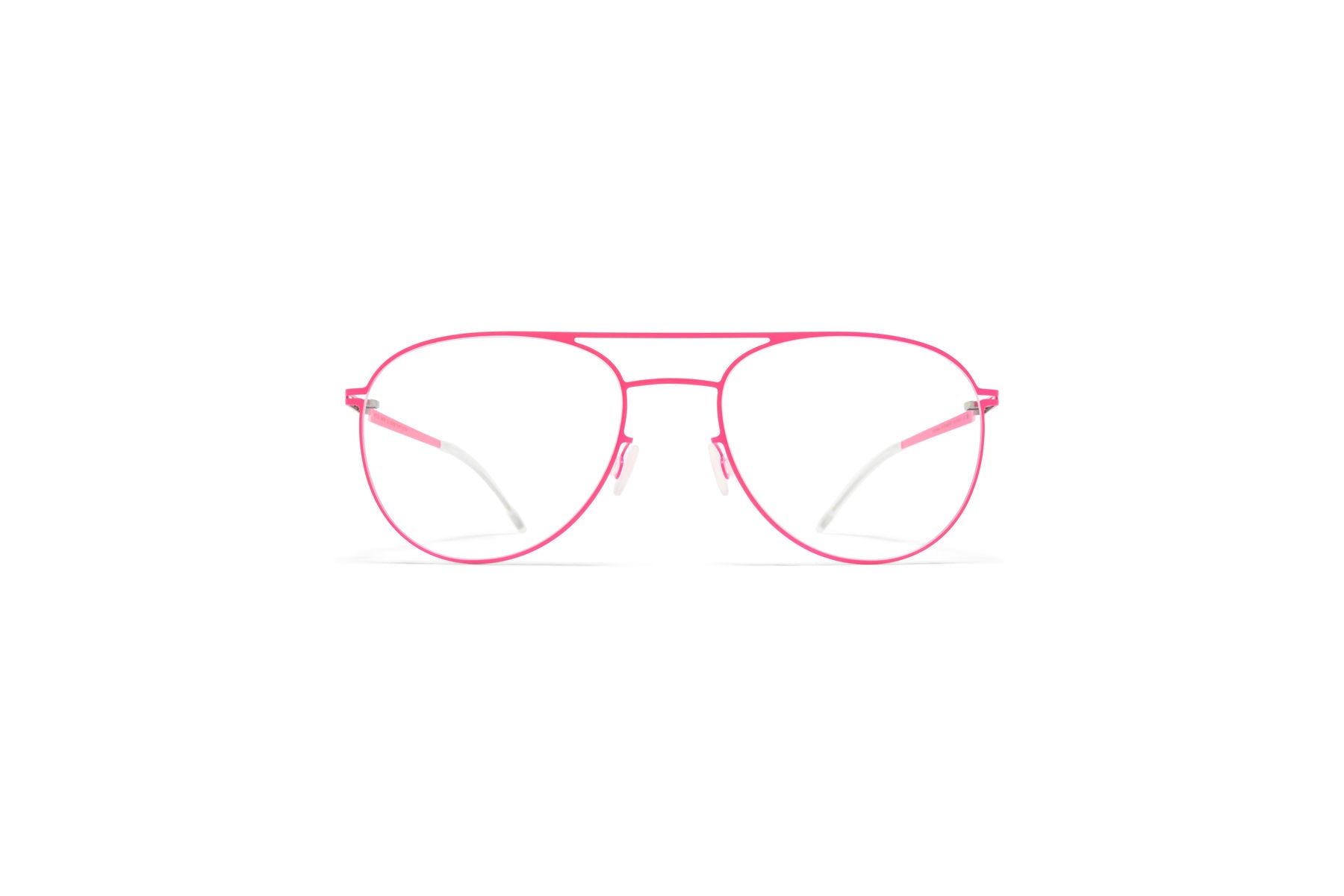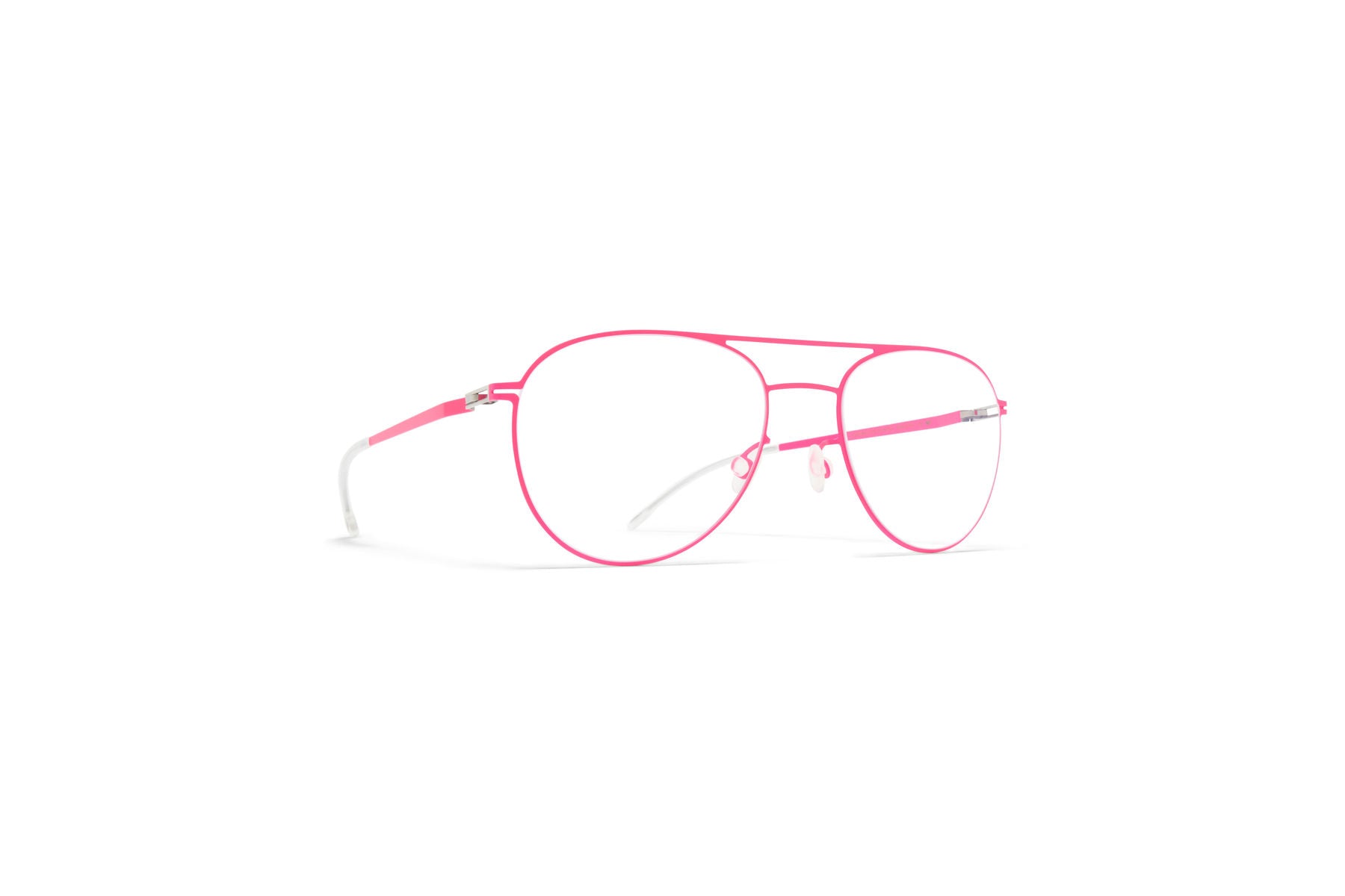 Made of lightweight stainless steel, NIKEN in Neon Pink with Clear lenses is an aviator shaped optical frame from the MYKITA LITE collection. Handcrafted in Berlin.