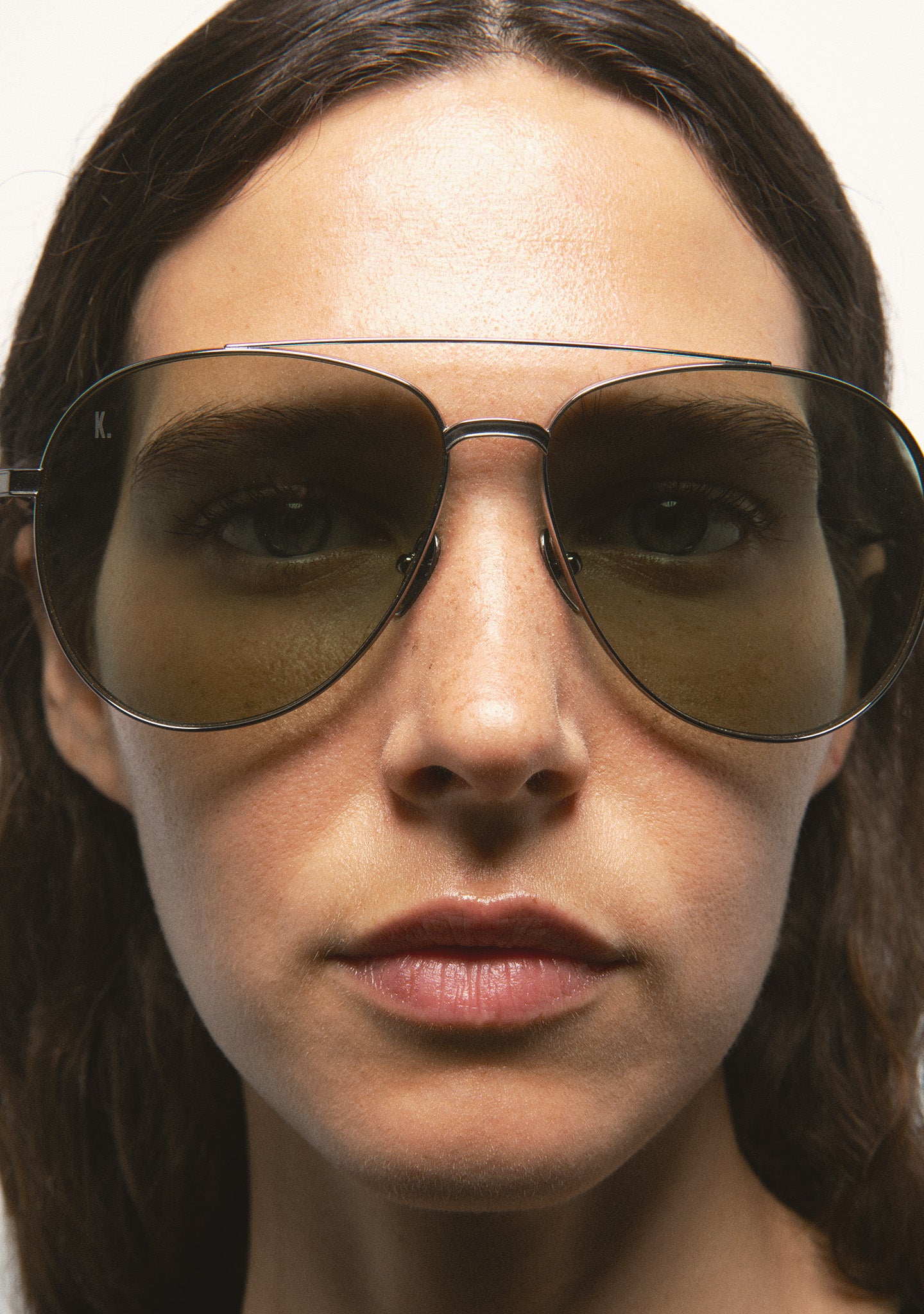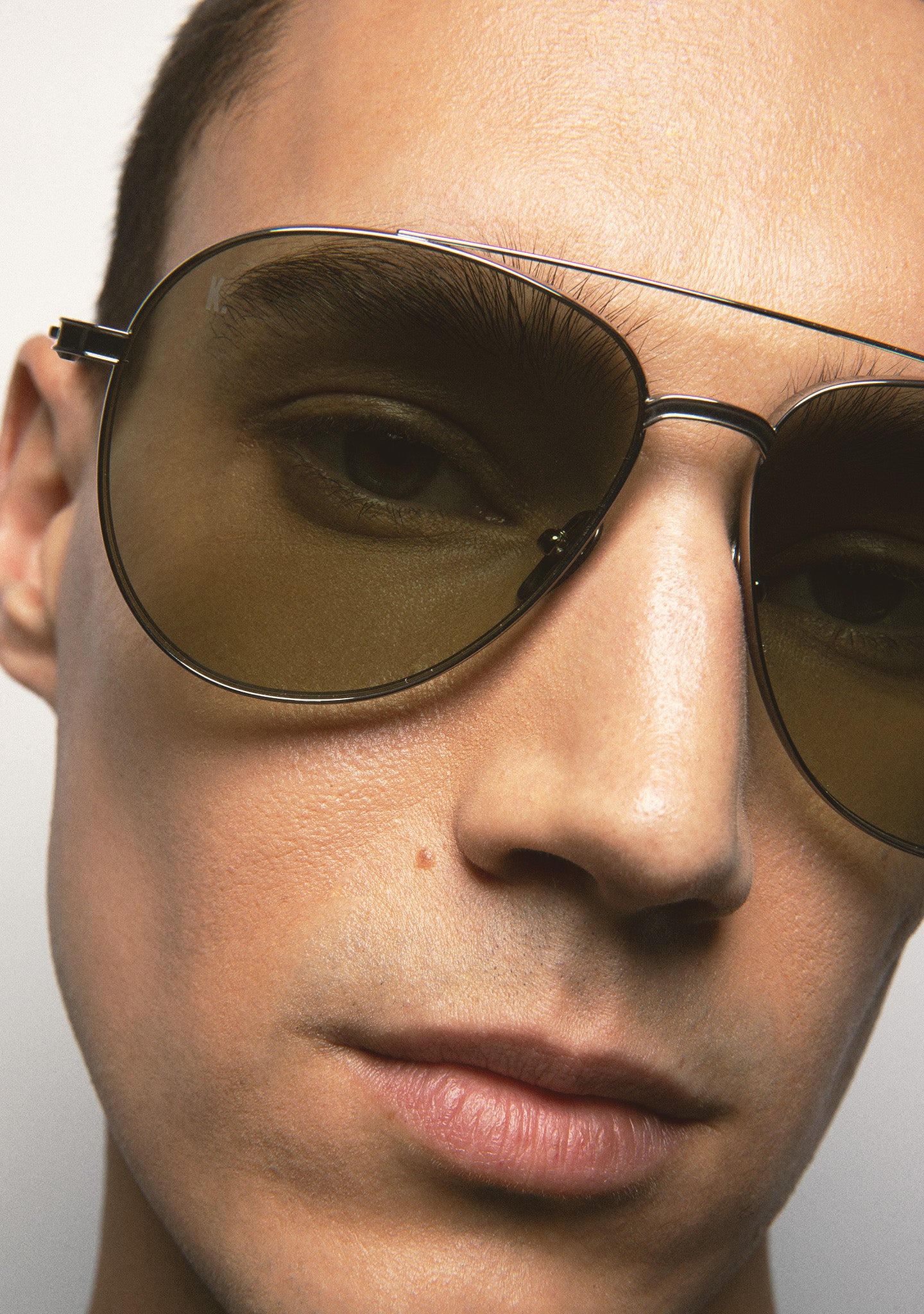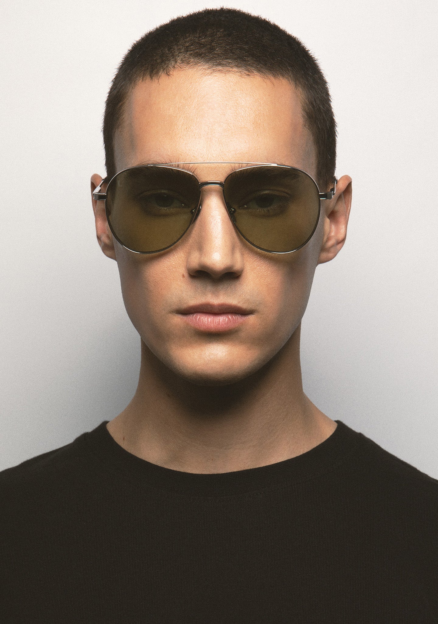 Aviator-shaped sunglasses. Matte black titanium front and temples. Matte black acetate temple tips. Black gradient 2-base lens with 100% UV protection and anti-reflective treatment. Category 3 lens. Built-in nose pads. Handmade.