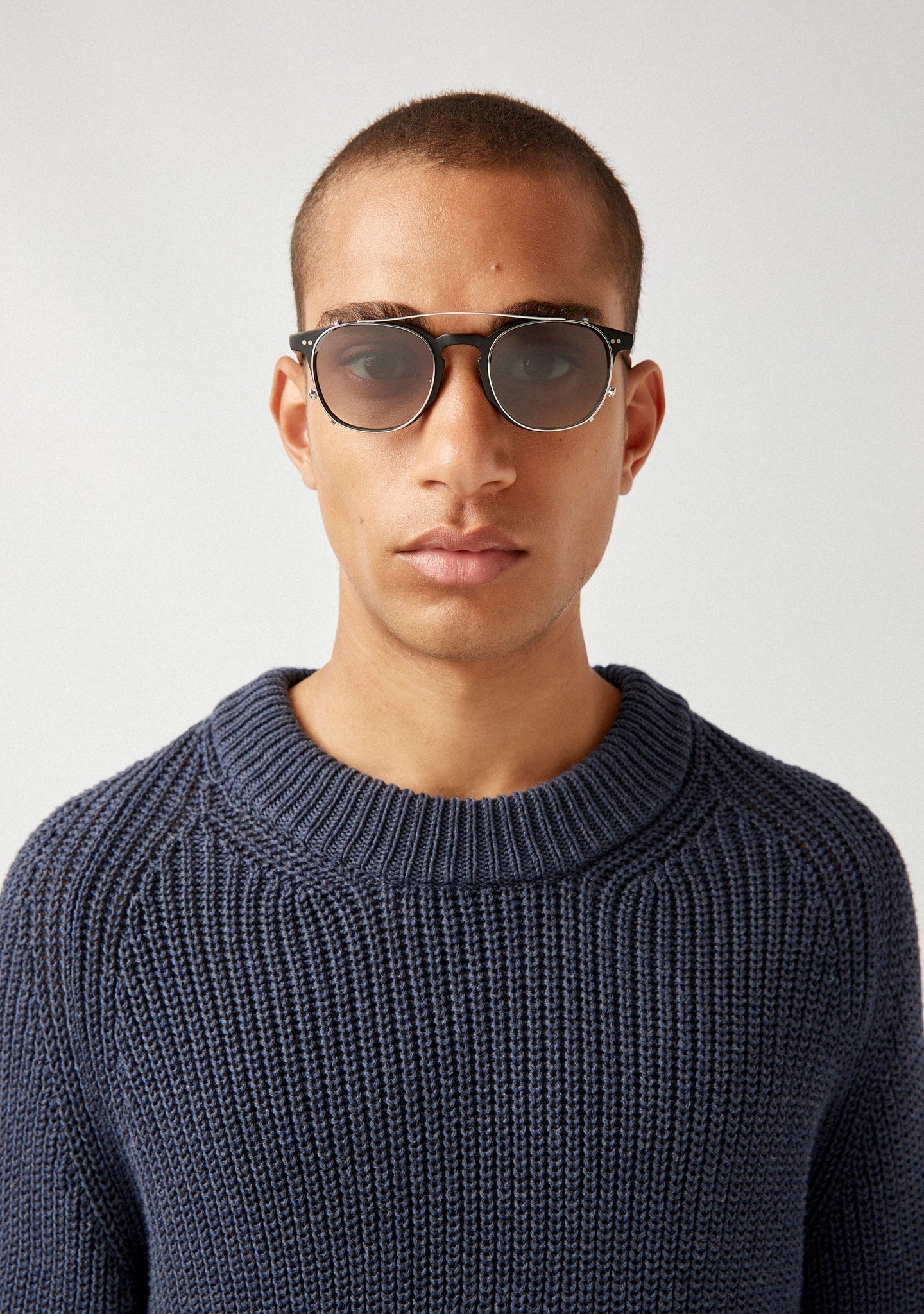 Clip that turns frames into sunglasses, with grey gradient tint lenses and 100% UV protection.
