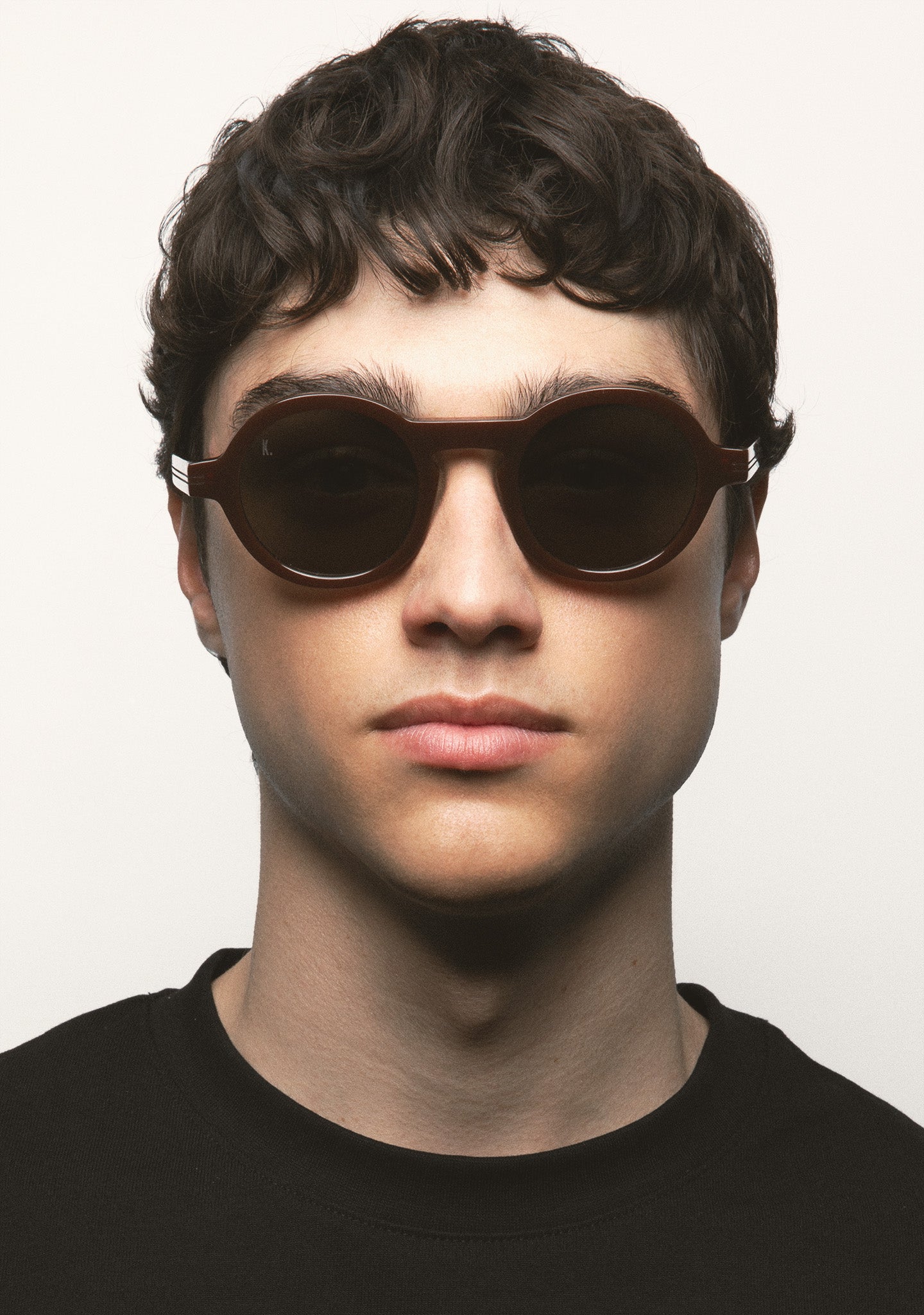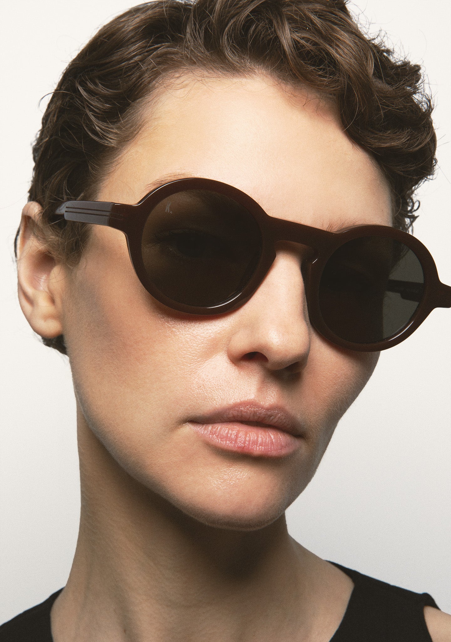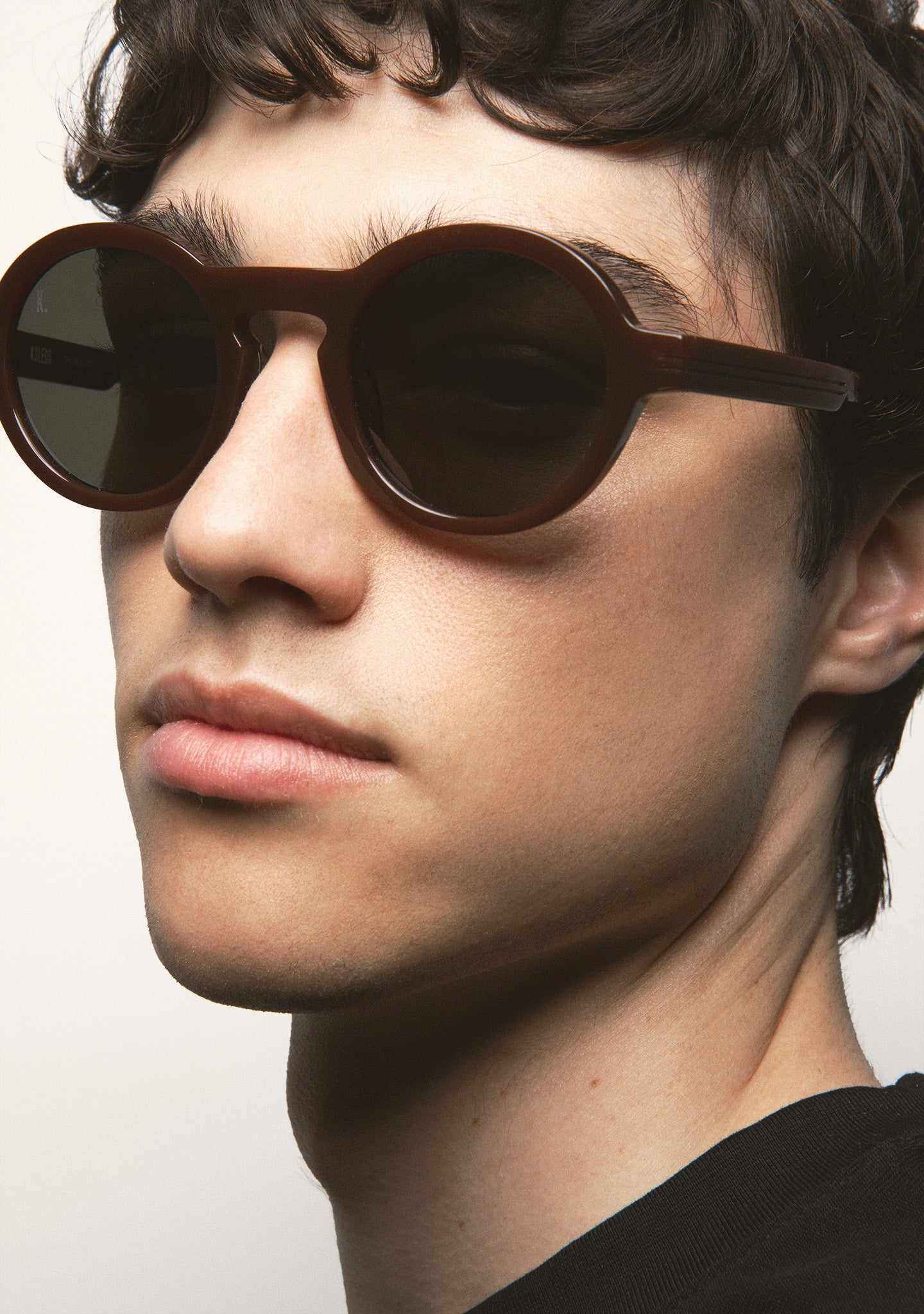 Round sunglasses. Black acetate frame and temples. Photochromic green lens, base 2, with UV protection and anti-reflective treatment. Category 1-3 lens. Integrated acetate nose pads. Handcrafted.