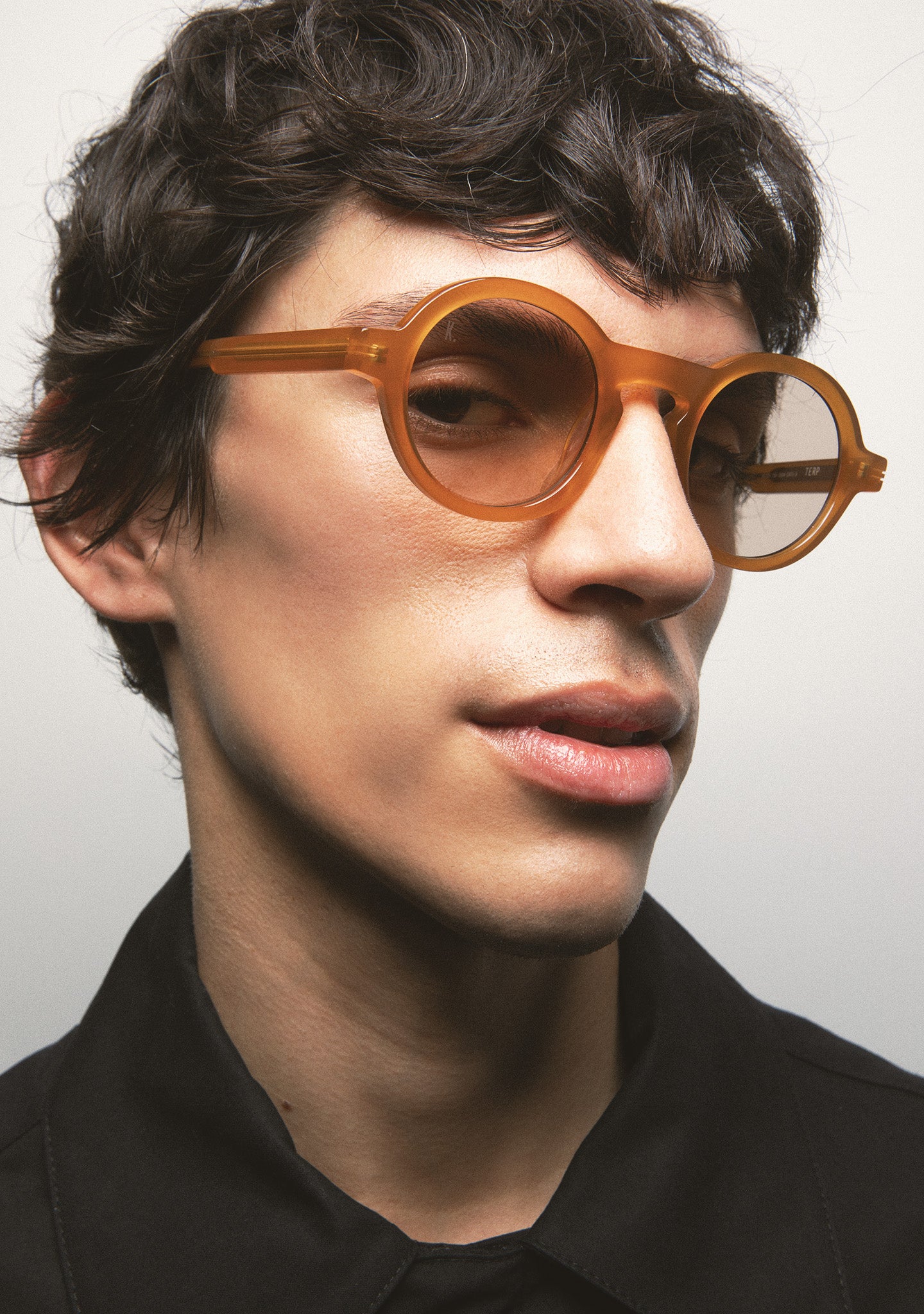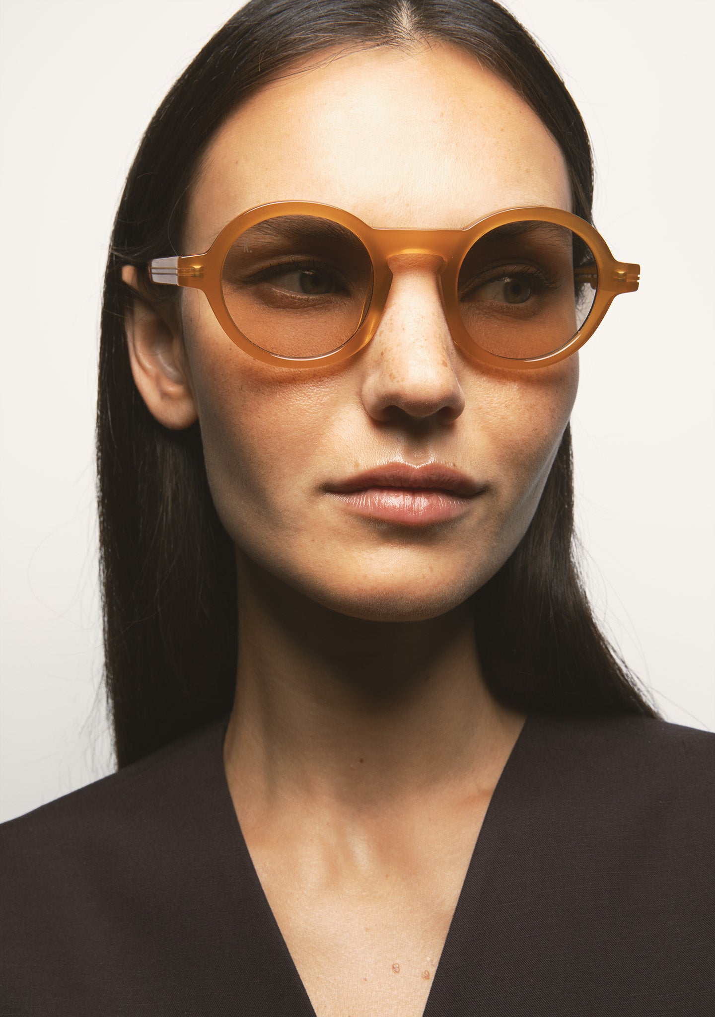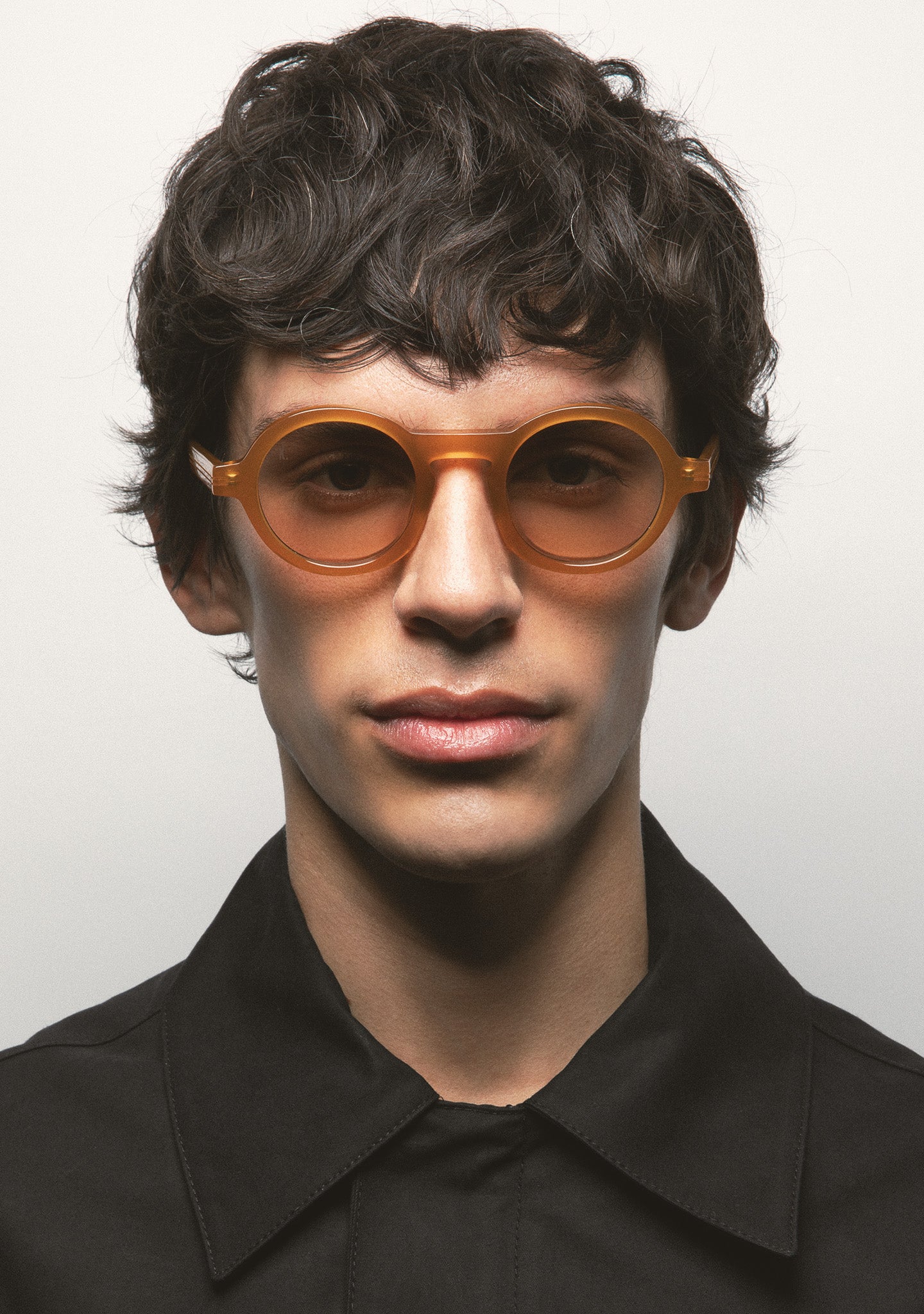 Round sunglasses. Black acetate frame and temples. Photochromic green lens, base 2, with UV protection and anti-reflective treatment. Category 1-3 lens. Integrated acetate nose pads. Handcrafted.