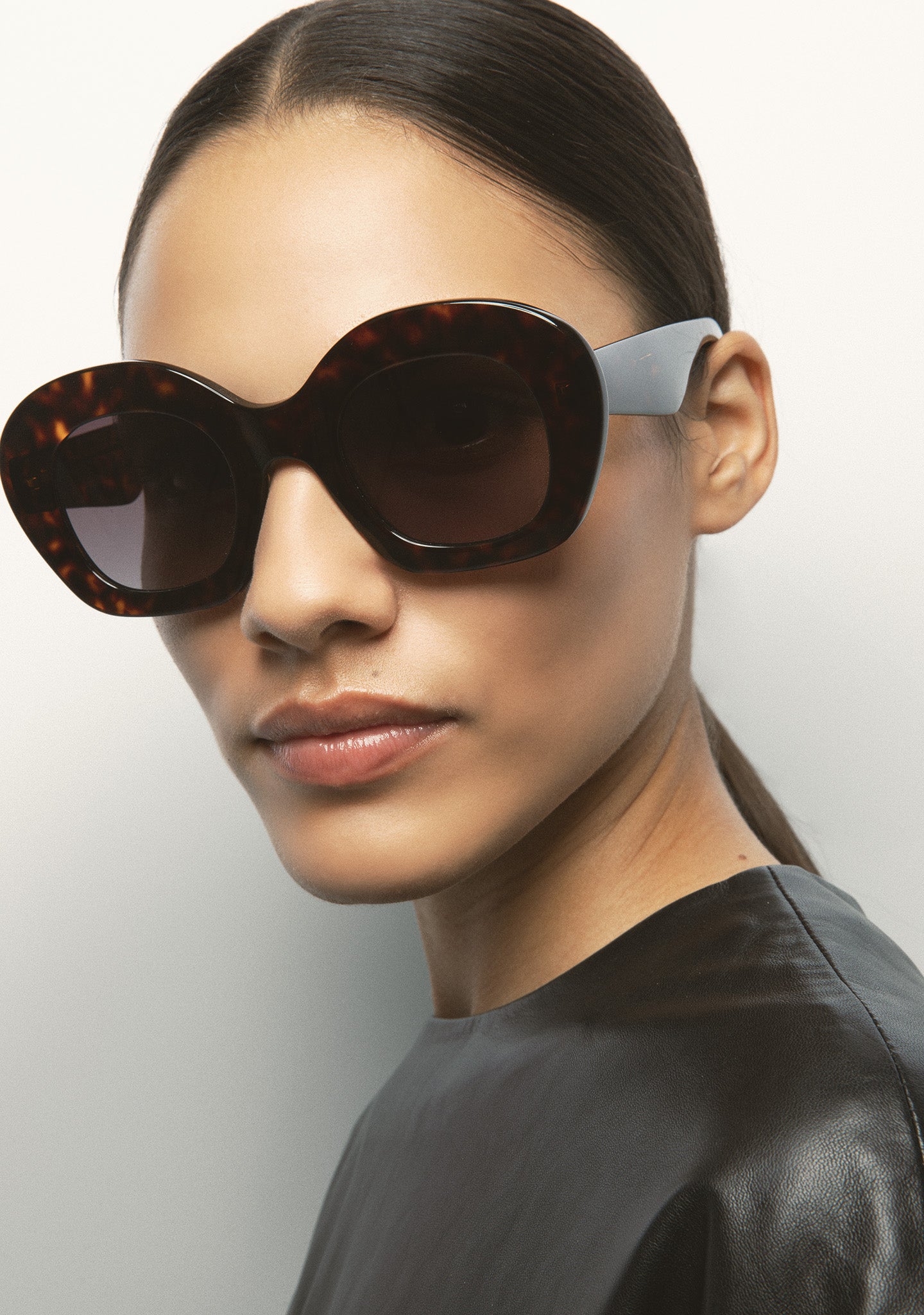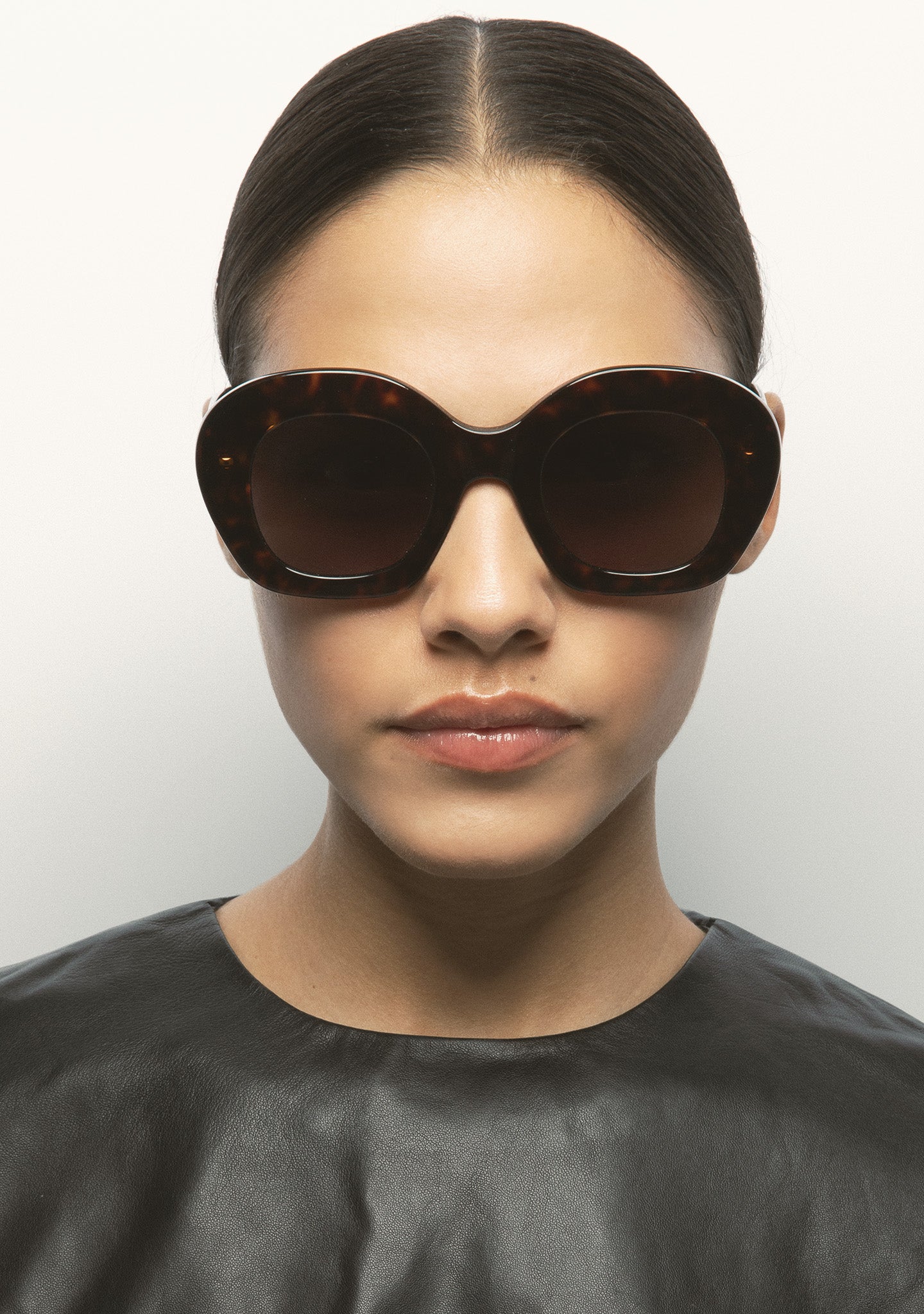 Round-shaped sunglasses. Front and temples made of translucent green acetate. Green gradient lens category 2 with base 2, 100% UV protection, and anti-reflective treatment. Integrated acetate nose pads. Handmade.