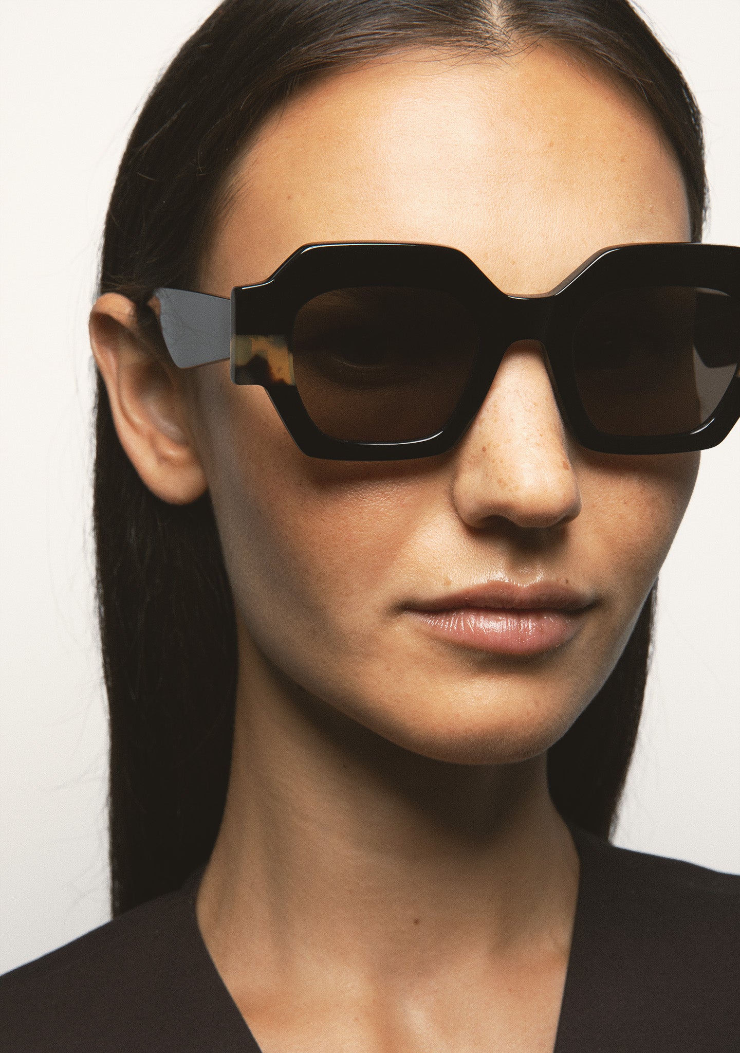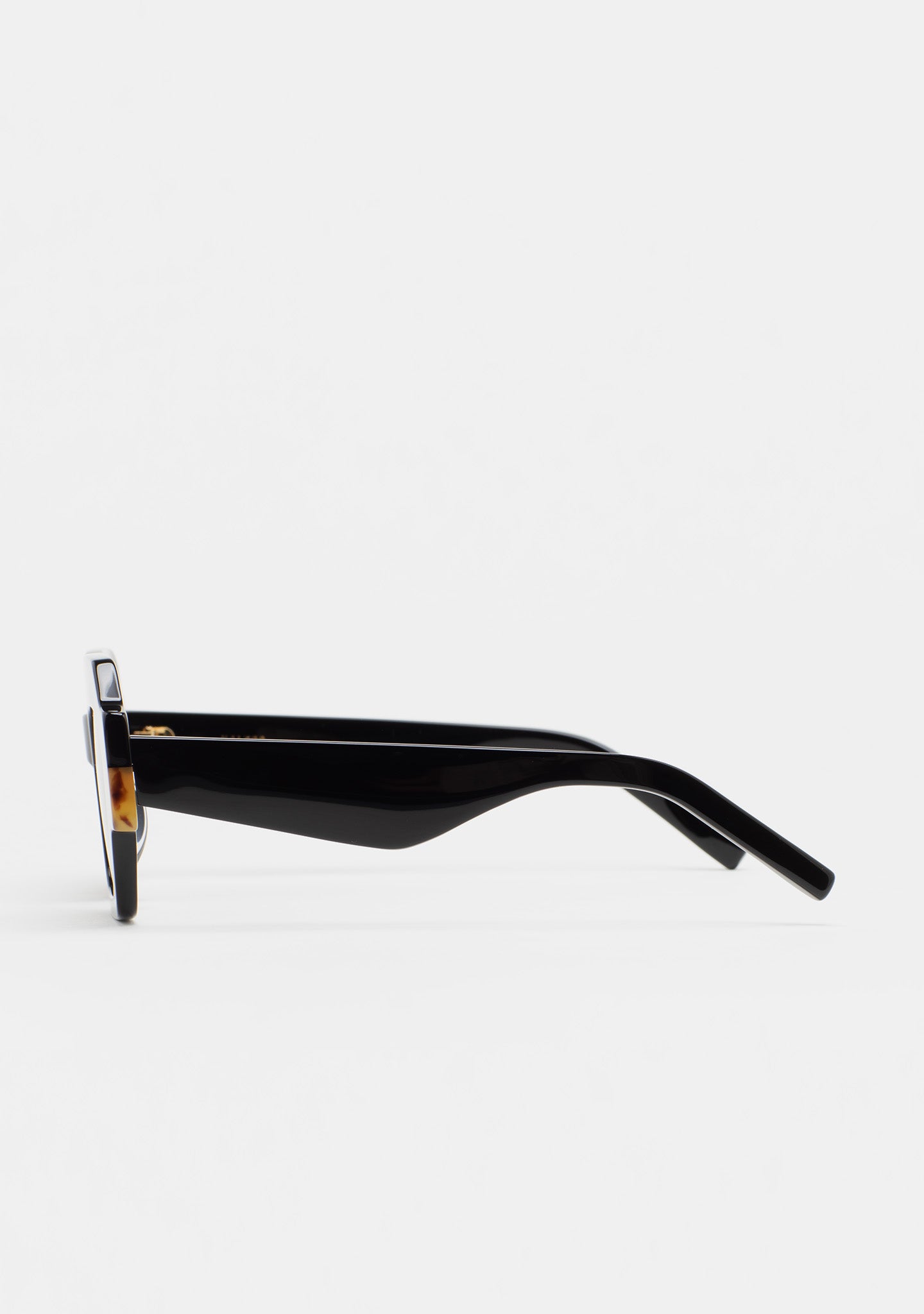 Square Sunglasses. Translucent brown acetate front with dark brown Havana laminate. Translucent brown acetate temples. Brown gradient lenses, base 2, with 100% UV protection and anti-reflective coating. Category 3 lenses. Integrated acetate nose pads. Handmade.