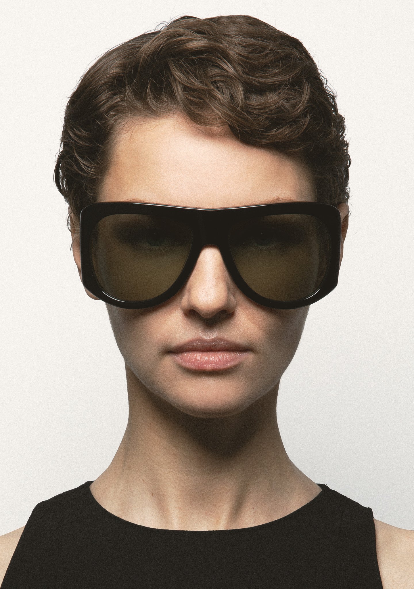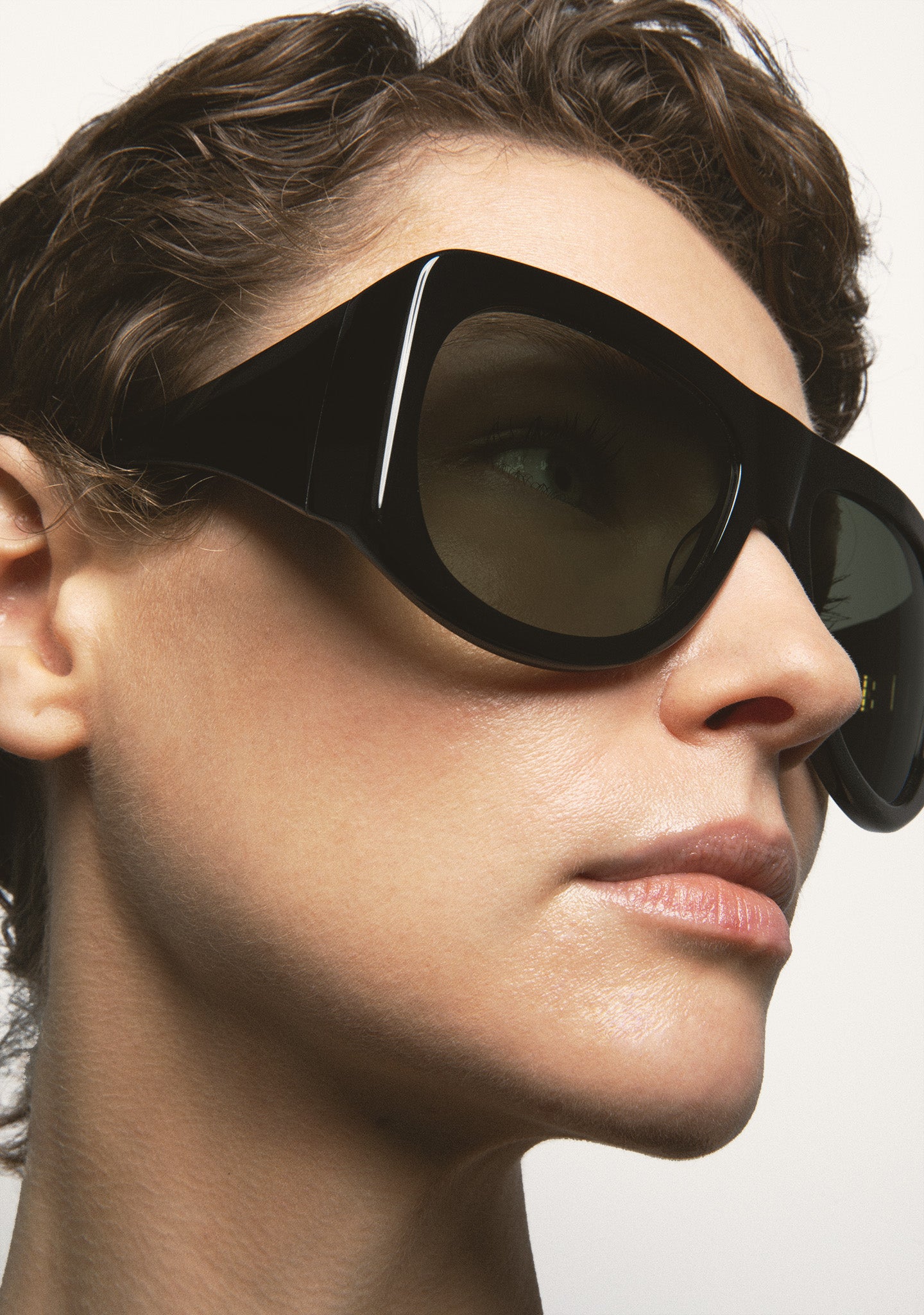 Wraparound Aviator Sunglasses. Beige acetate front and temples. Grey gradient lenses with 100% UV protection and anti-reflective coating. Category 3 lenses. Integrated acetate nose pads. Handmade.