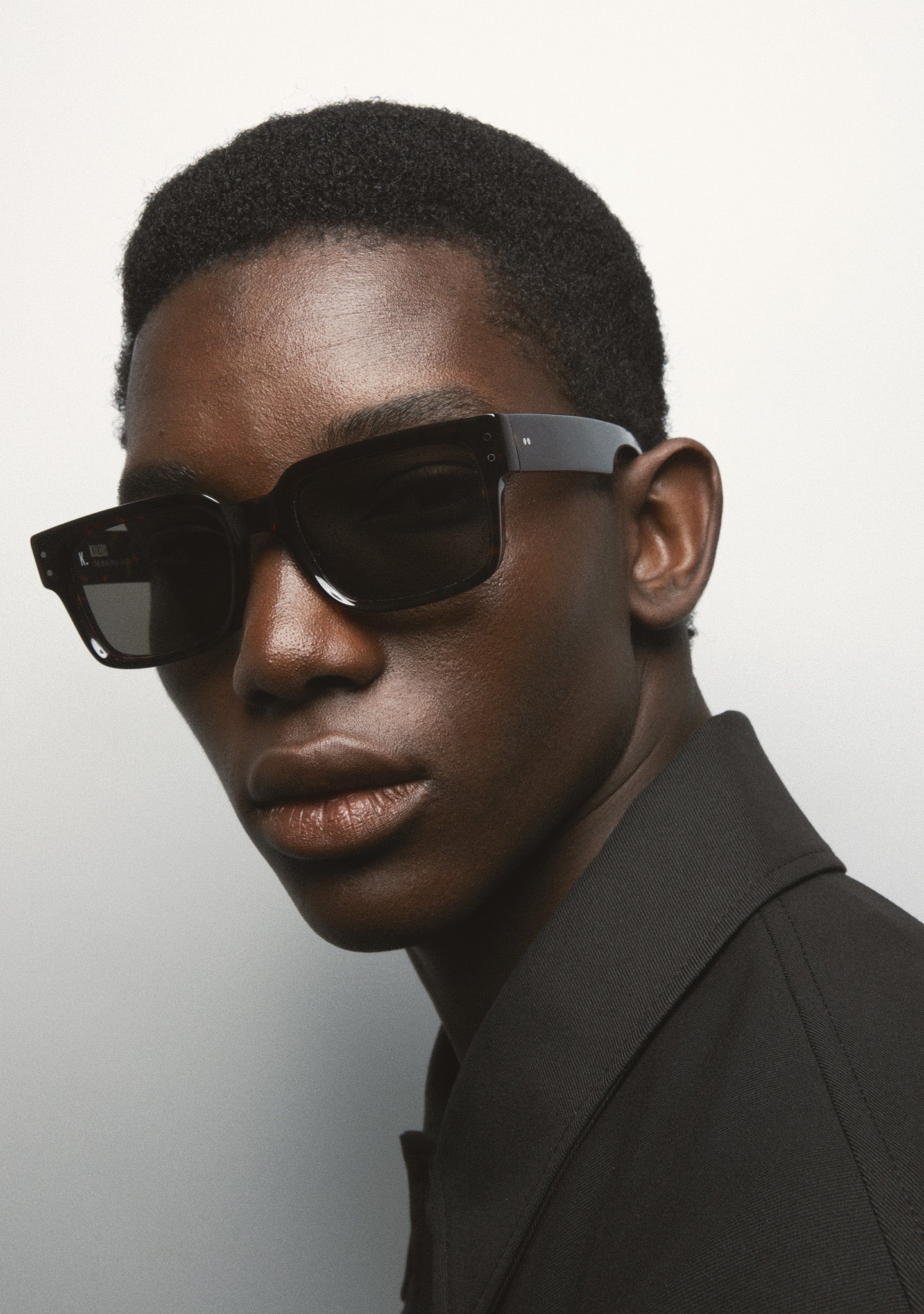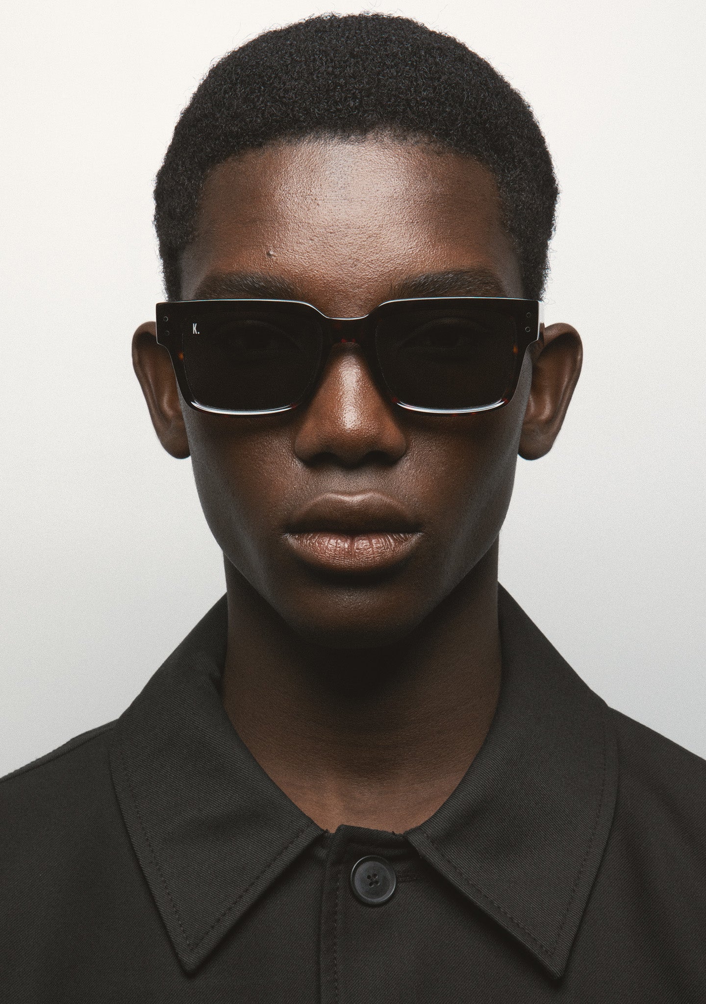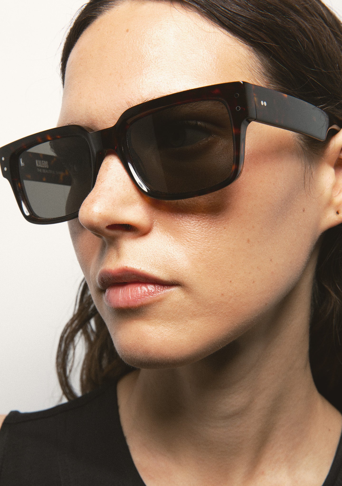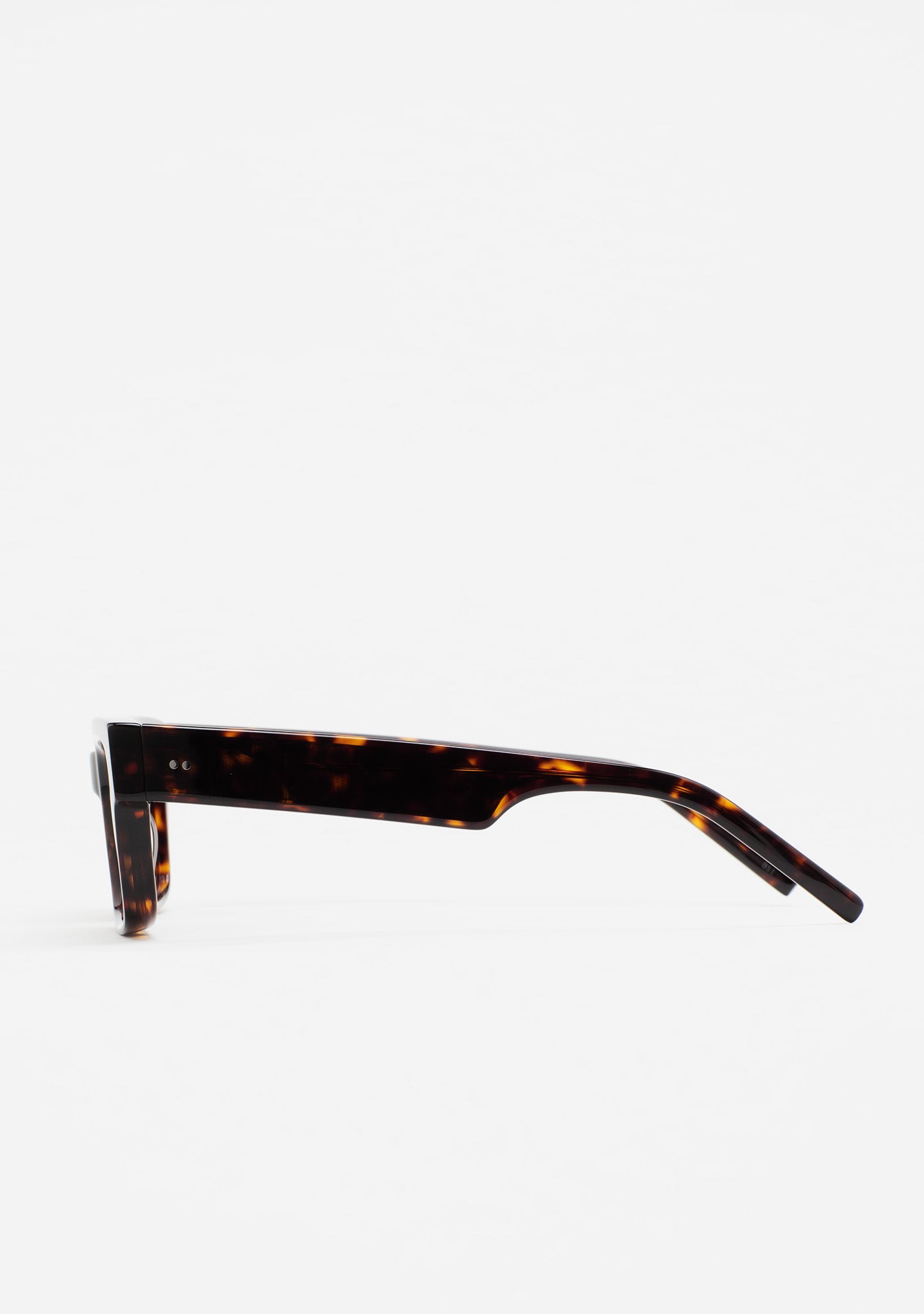 Rectangular-shaped optical glasses. Black acetate front and temples. Silver rivet hinges on the corners and temples. Blue photochromic gradient 2-base lens with UV protection and anti-reflective treatment. Category 1-3 lenses. Built-in acetate nose pads. Handmade.