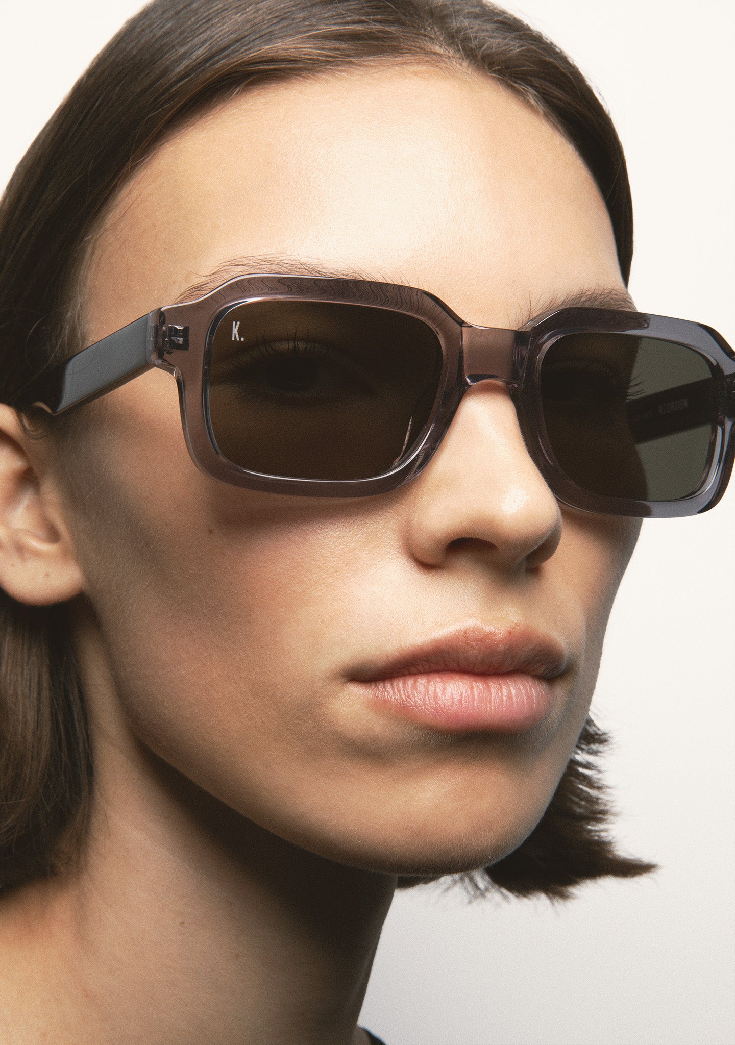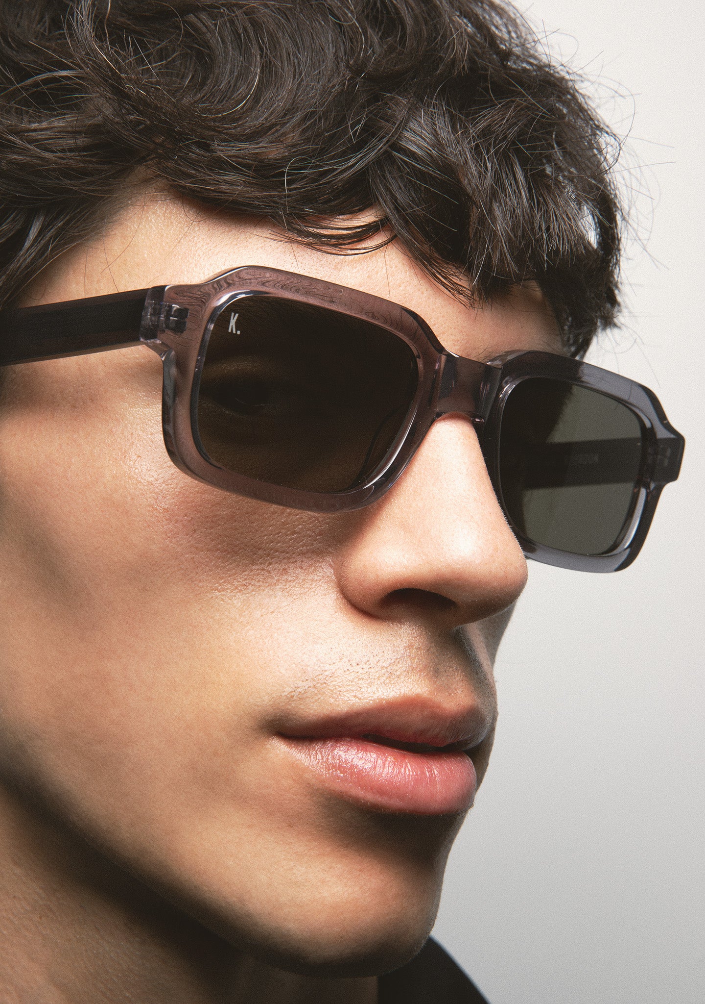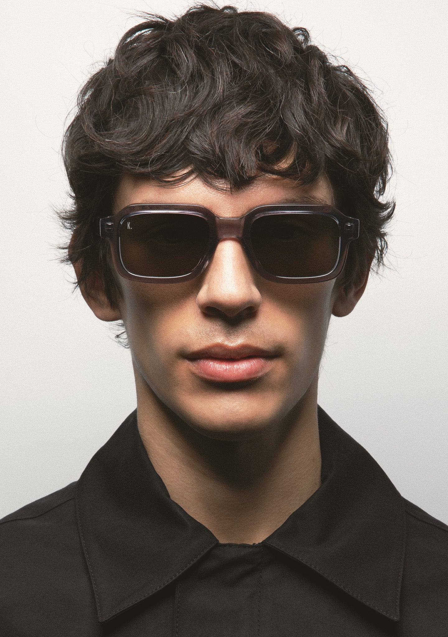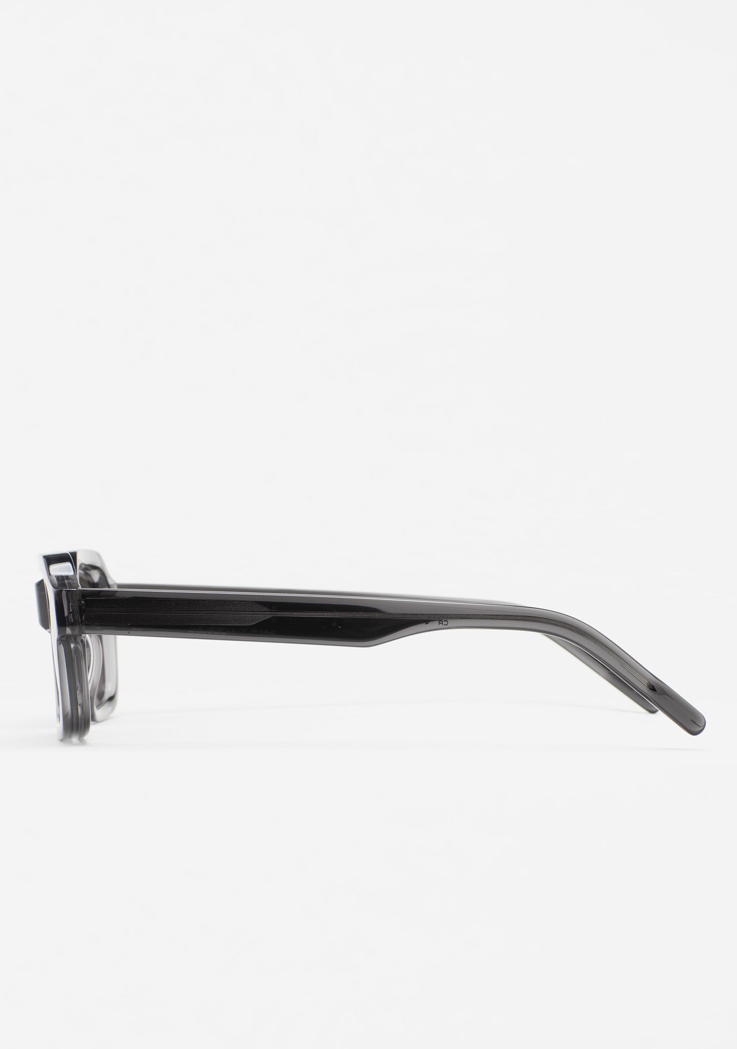 Rectangular sunglasses. Black acetate frame and temples. Photochromic green lens, base 2, with UV protection and anti-reflective treatment. Category 1-3 lens. Integrated acetate nose pads. Handcrafted.