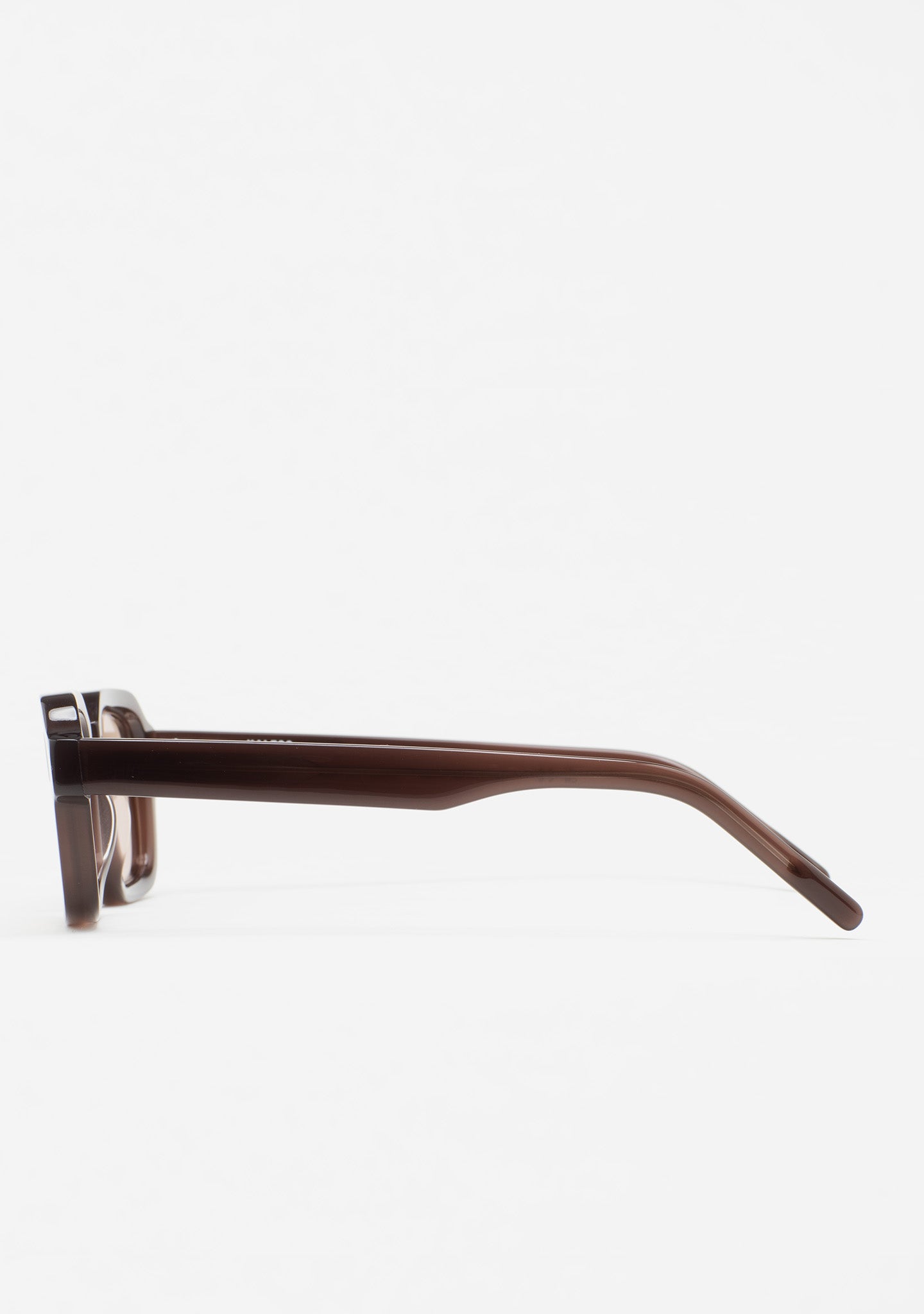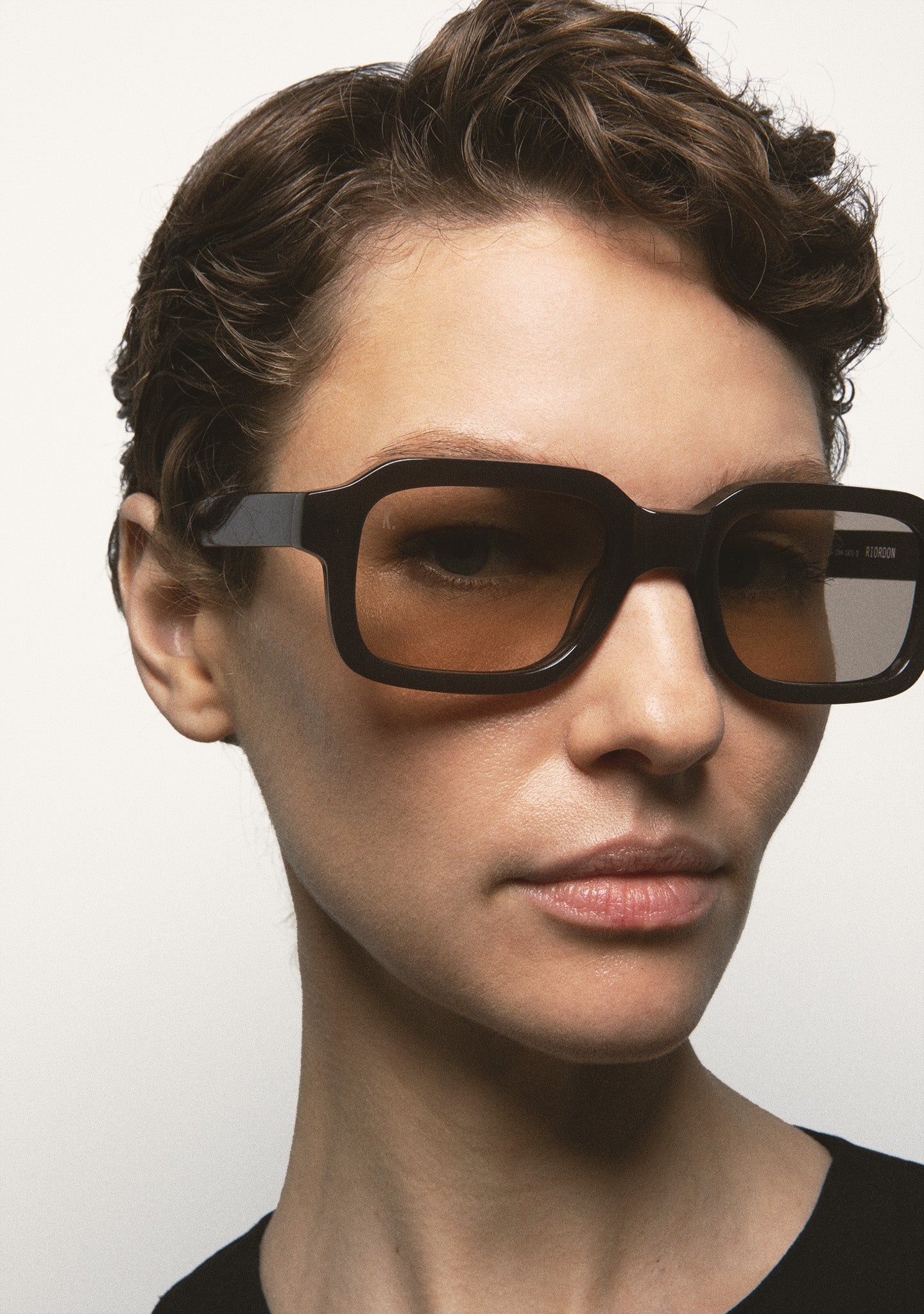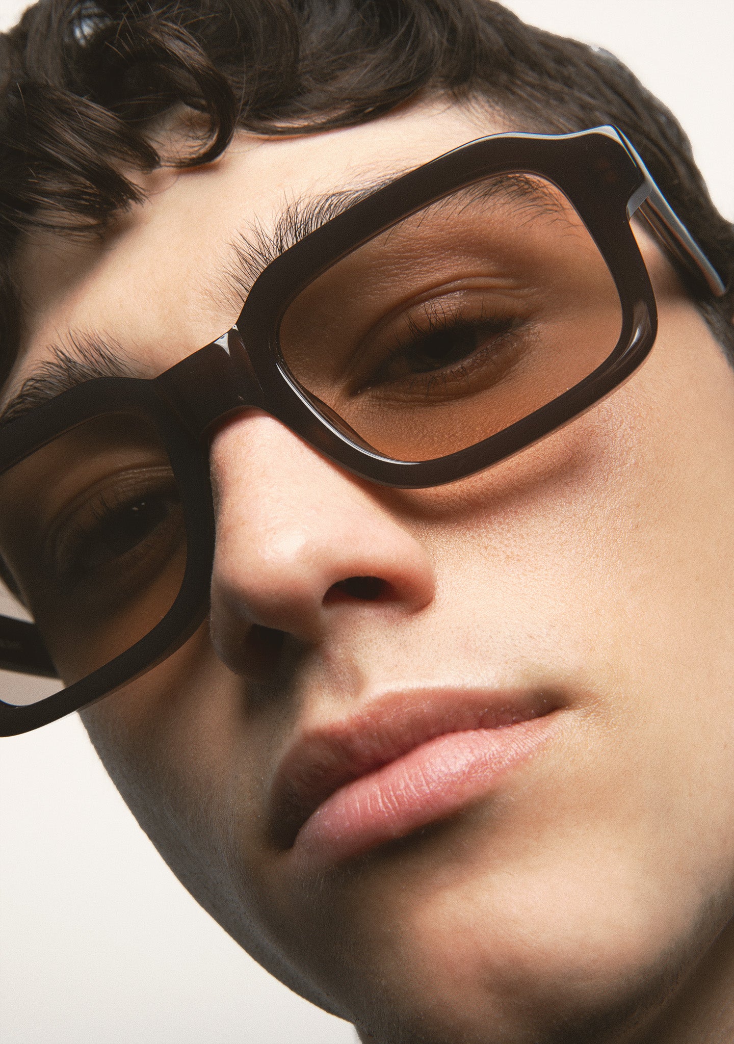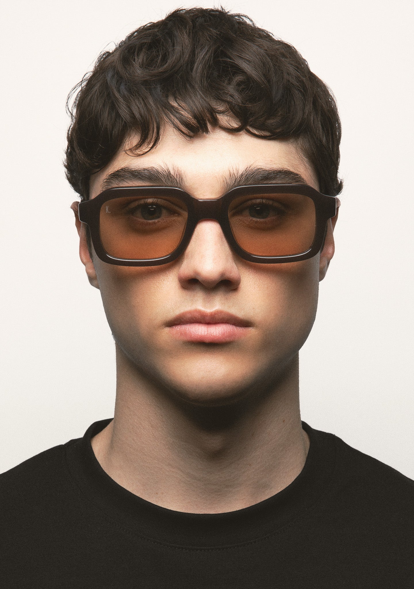 Rectangular sunglasses. Black acetate frame and temples. Photochromic green lens, base 2, with UV protection and anti-reflective treatment. Category 1-3 lens. Integrated acetate nose pads. Handcrafted.