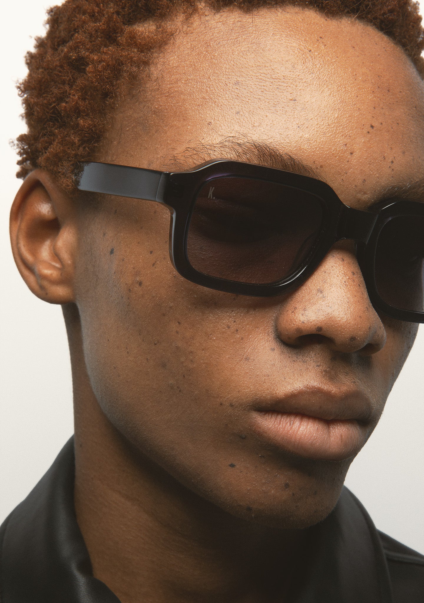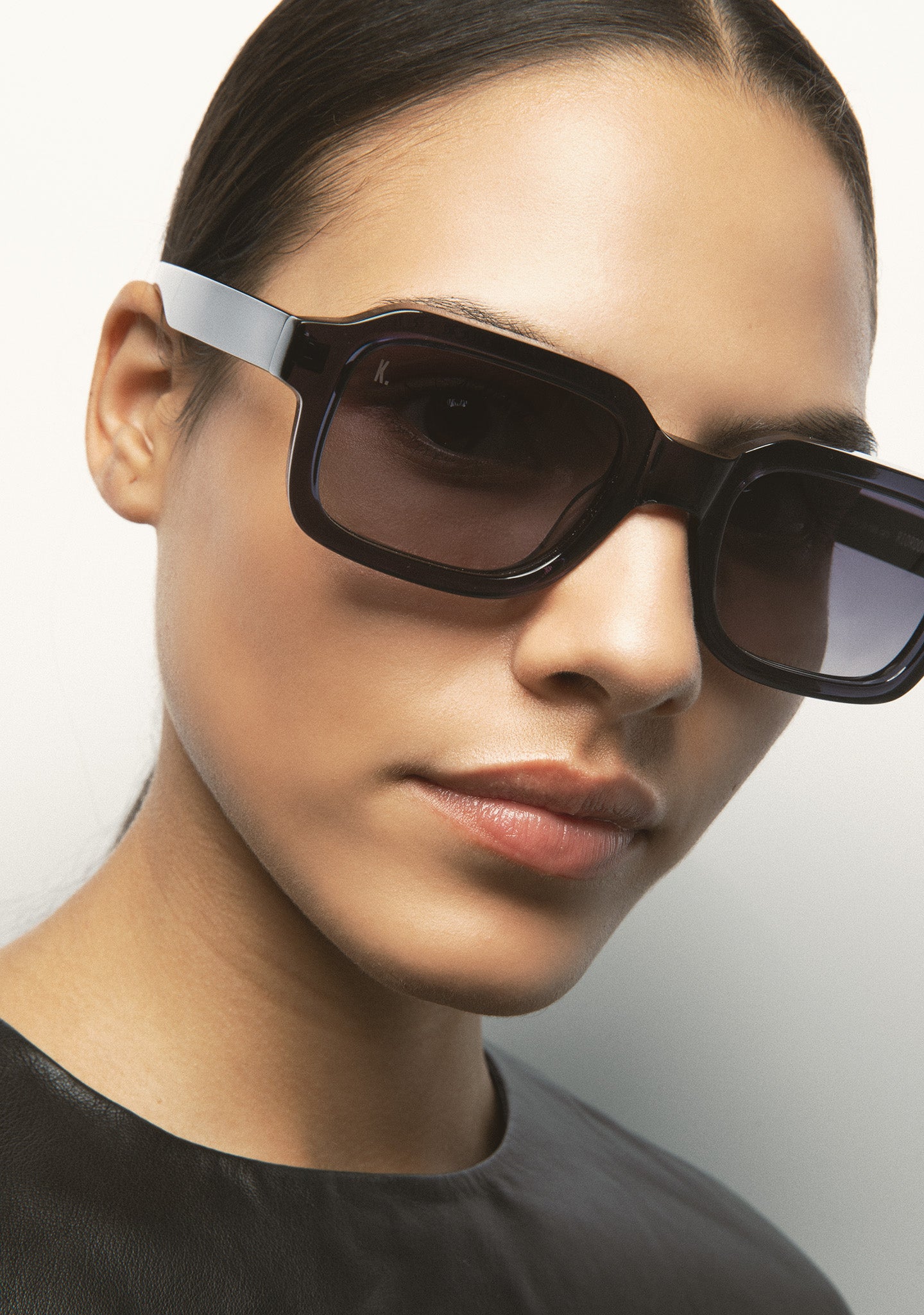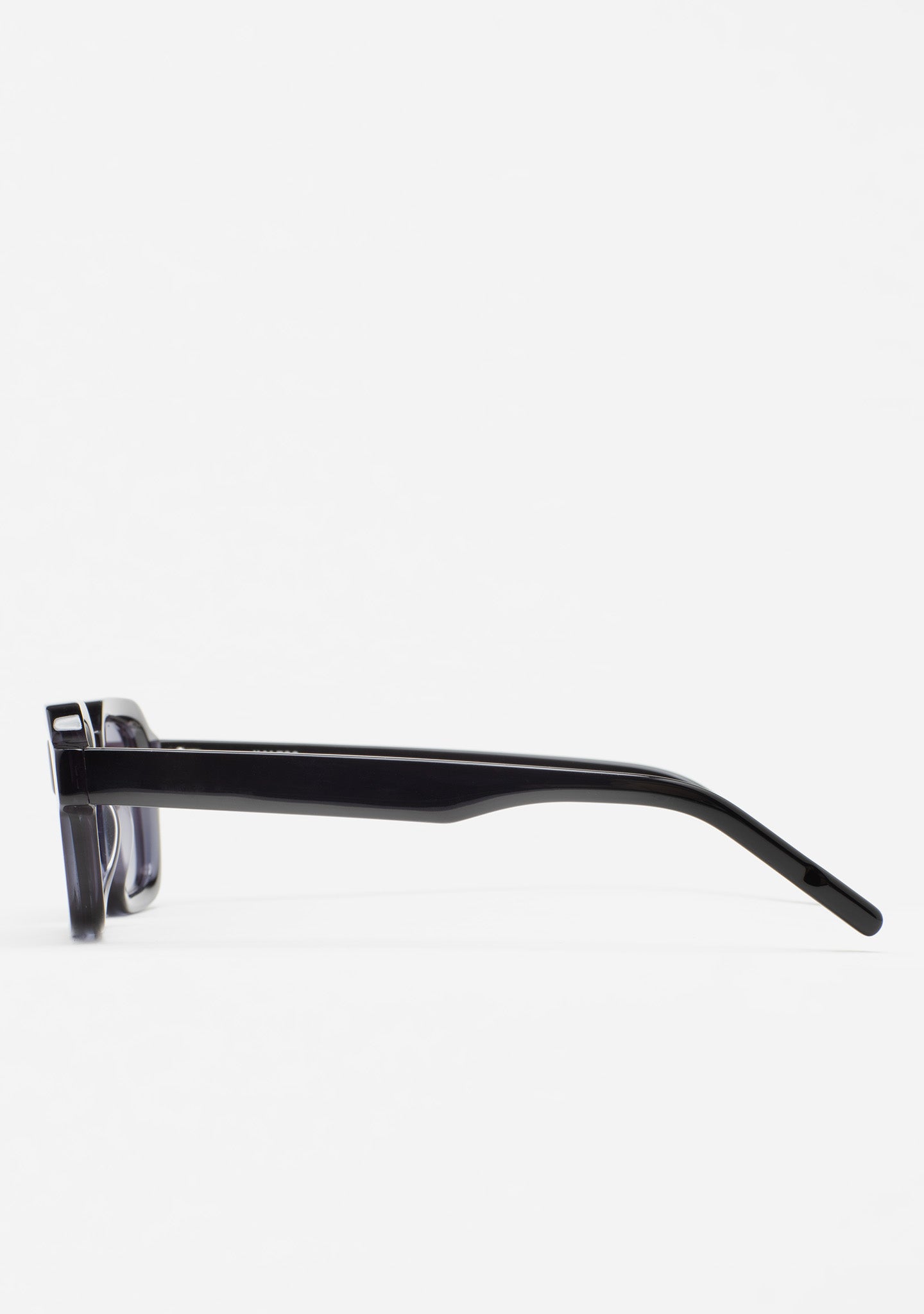 Rectangular sunglasses. Black acetate frame and temples. Photochromic green lens, base 2, with UV protection and anti-reflective treatment. Category 1-3 lens. Integrated acetate nose pads. Handcrafted.