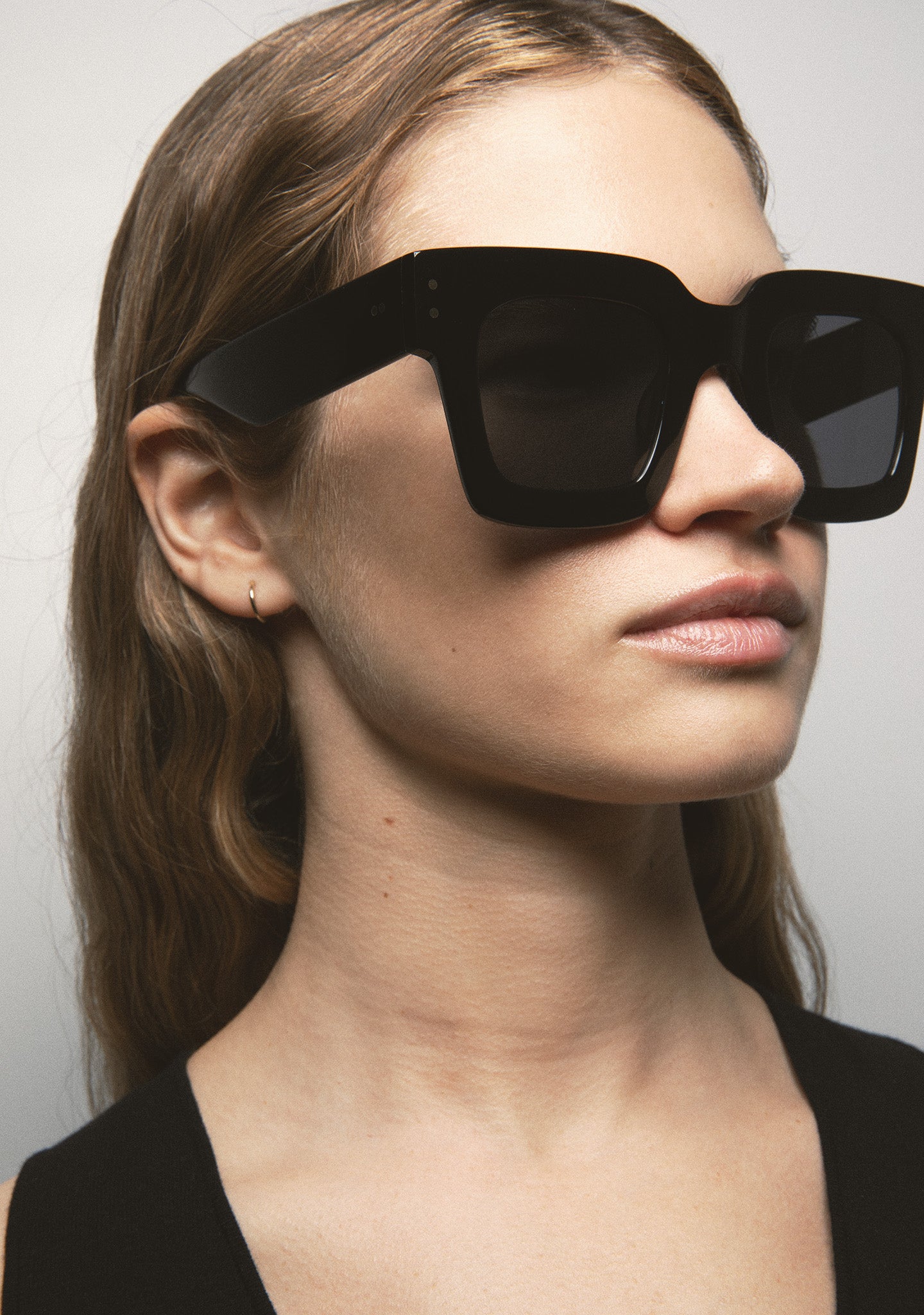 Square-shaped sunglasses. Brown Havana acetate front and temples. Gold rivet hinges at the temple and arms. Gradient green lens, base 2, with 100% UV protection and anti-reflective treatment. Category 2 lens. Integrated acetate nose pads. Handmade.