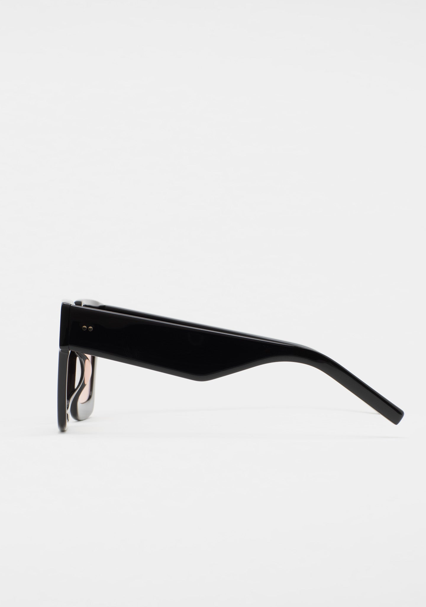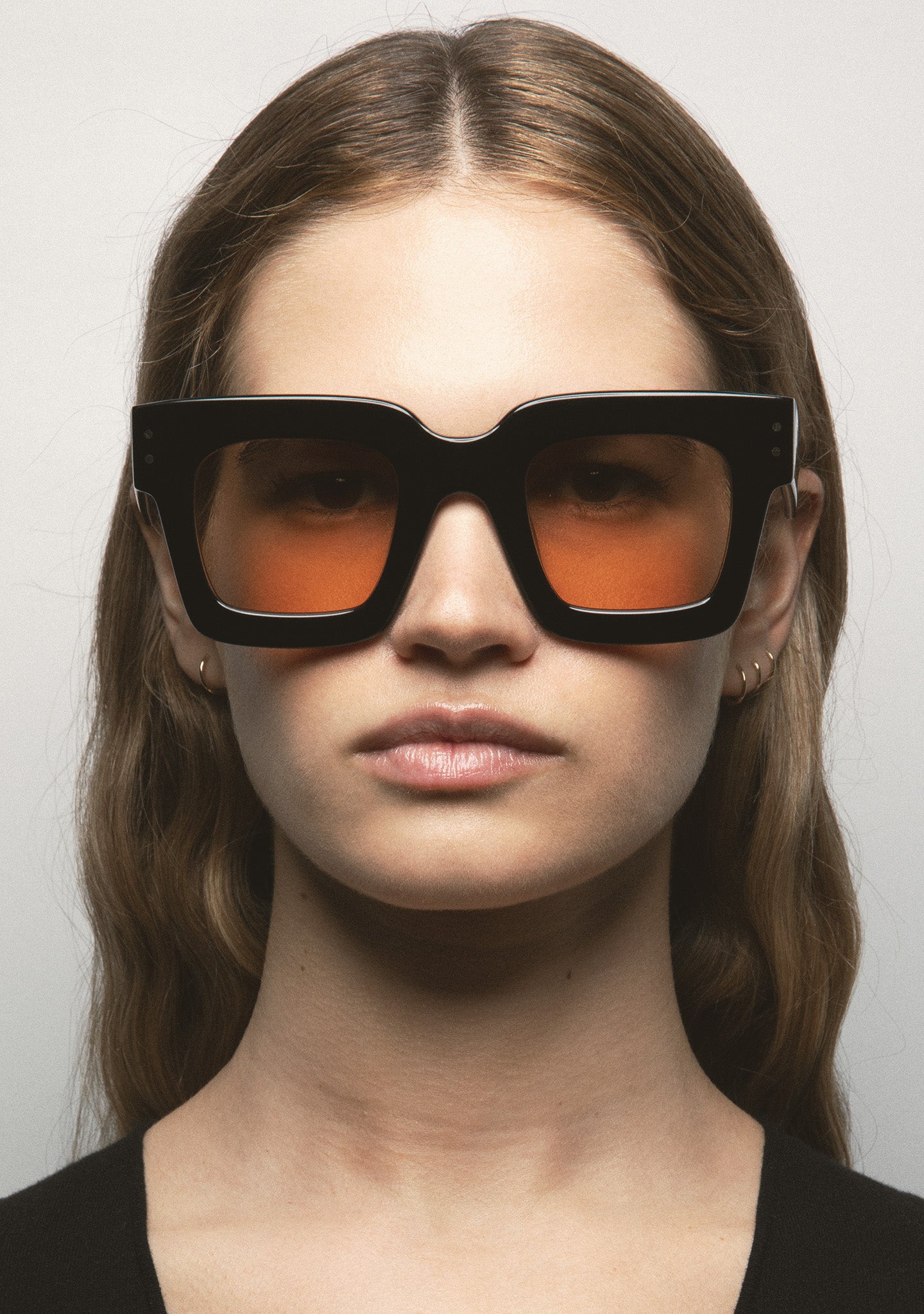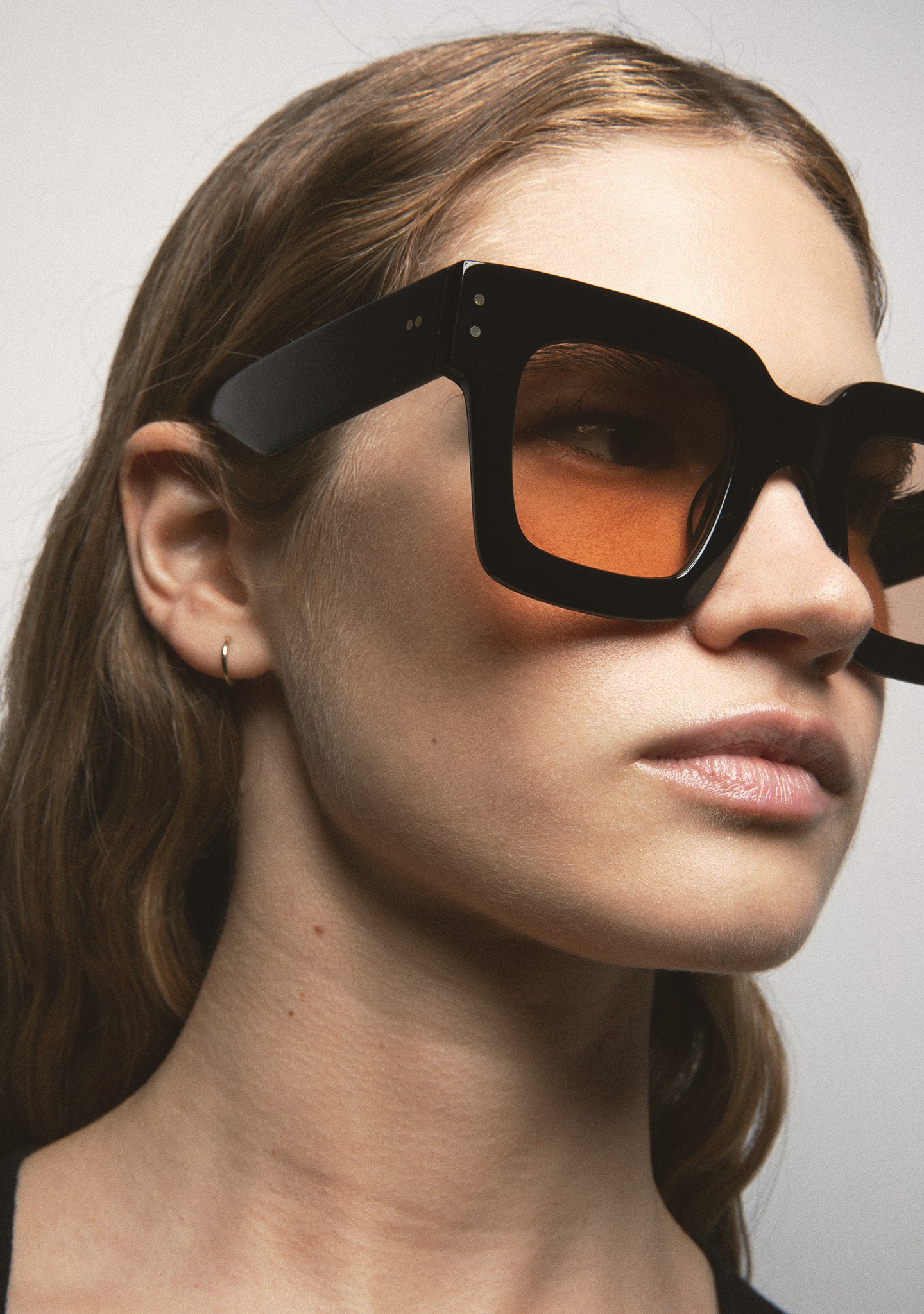 Square-shaped sunglasses. Brown Havana acetate front and temples. Gold rivet hinges at the temple and arms. Gradient green lens, base 2, with 100% UV protection and anti-reflective treatment. Category 2 lens. Integrated acetate nose pads. Handmade.