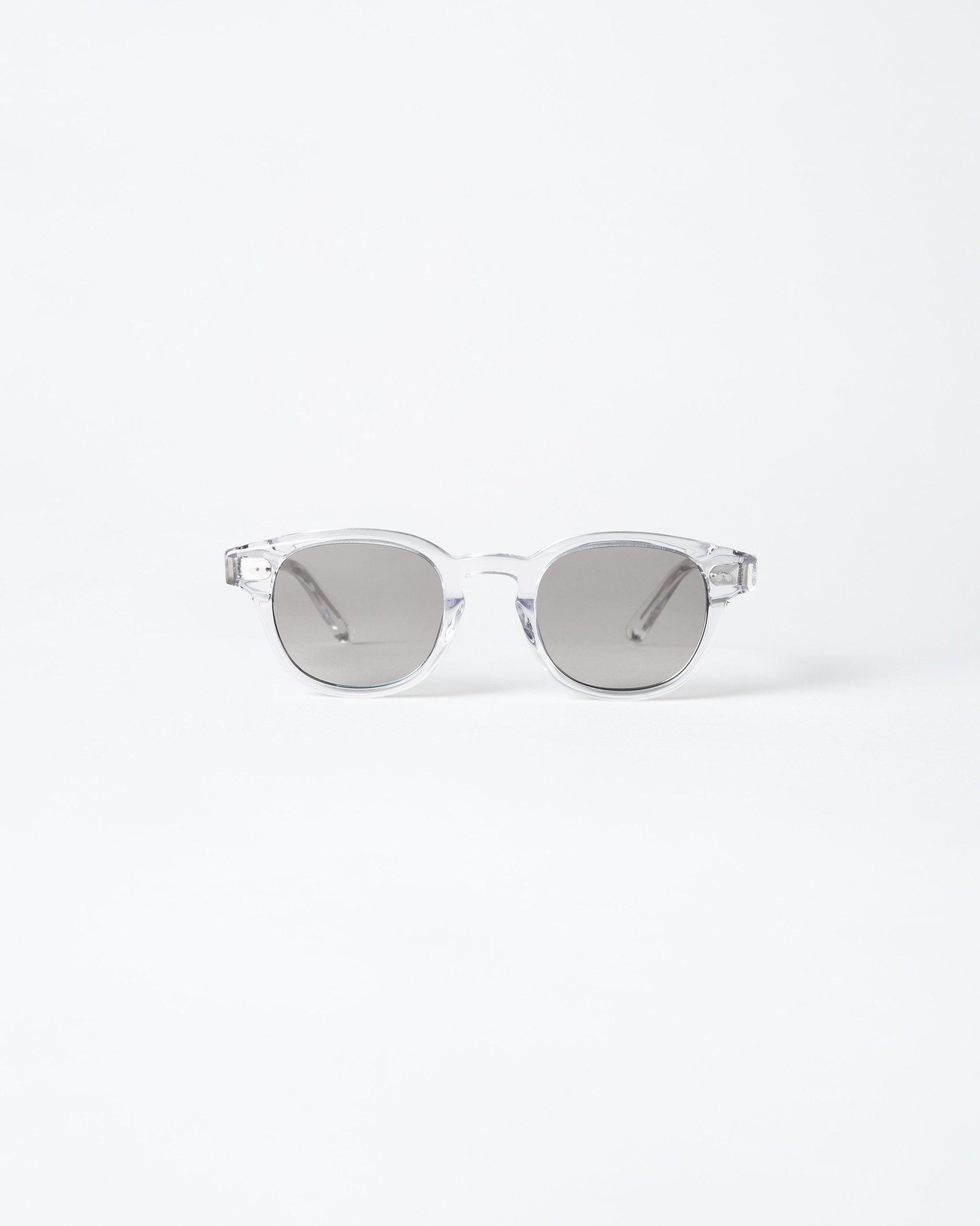 01 is a classic rounded silhouette with a sculptural temple construction. Handcrafted in Italian acetate with silver-tone hardware rivets and beveled brow, finished with pointed temple tips for an elegant profile. Fitted with UV-protective CR39 lenses.