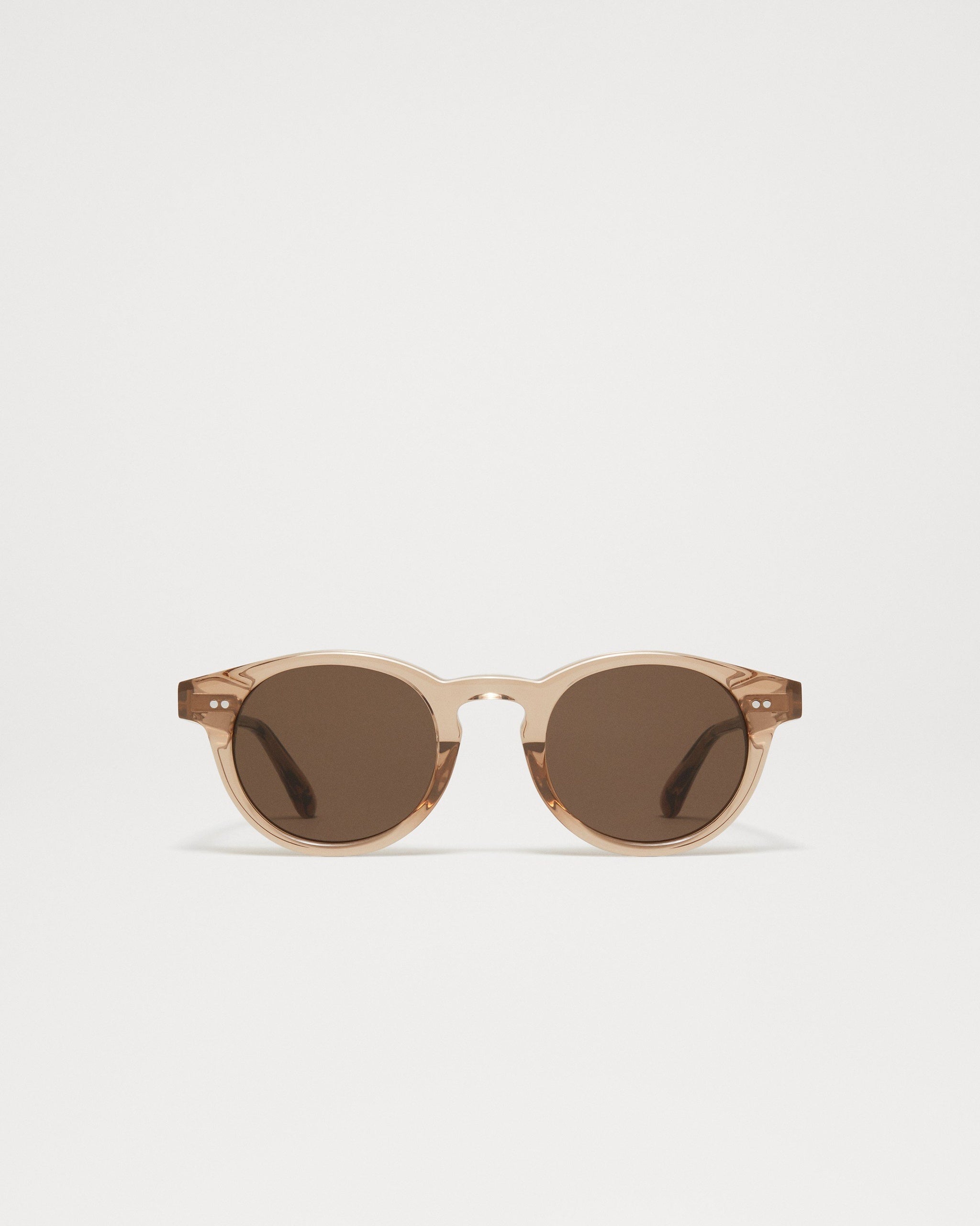 03 is a sleek pantos silhouette drawing inspiration from vintage classics. The oval frame is detailed with silver-tone rivet hinges and finished with subtle bevel cuts along the UV-protective CR39 lenses.