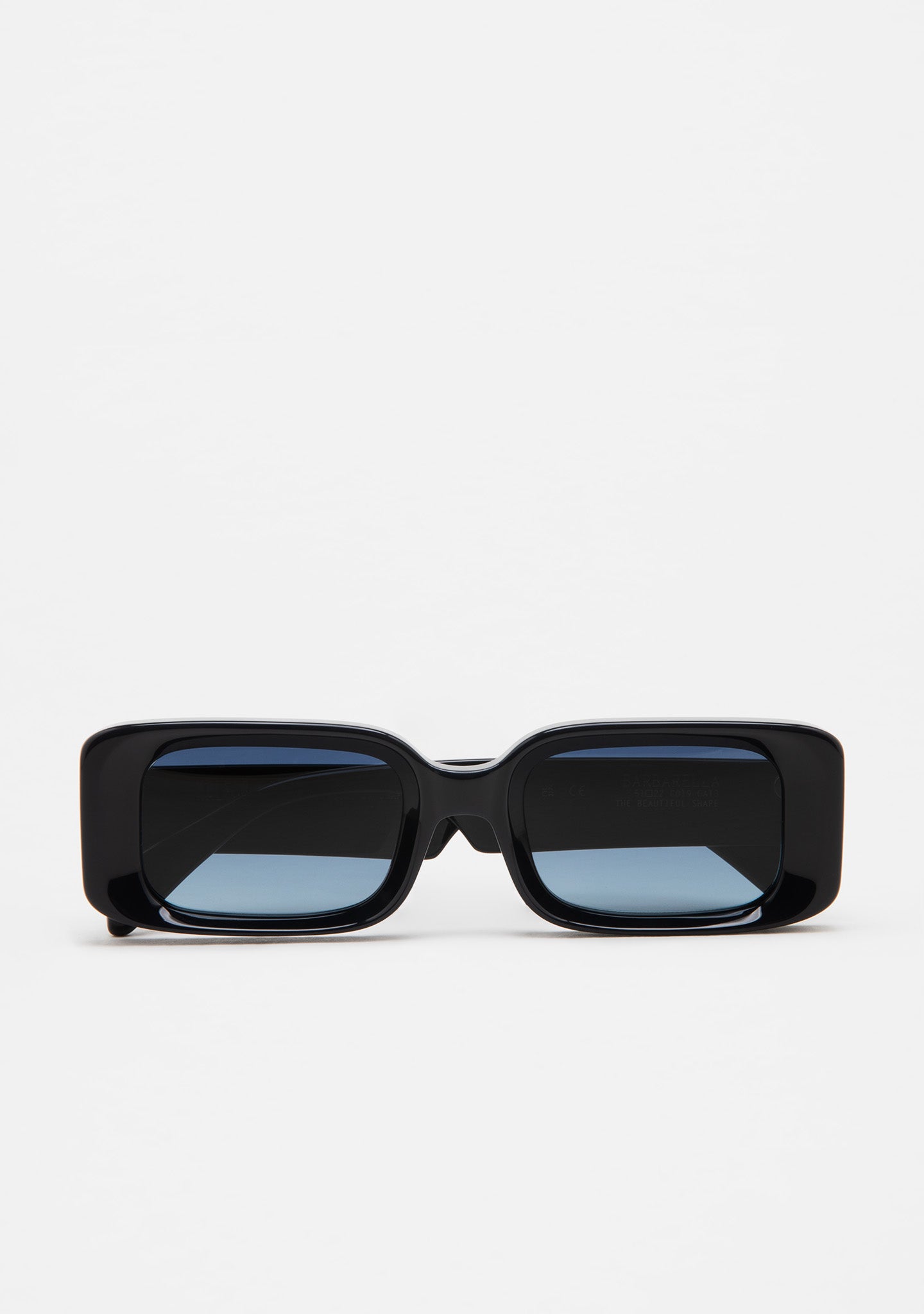 Sunglasses in thick monochrome dark blue acetate. Rectangular shape with milling around the lenses. Acetate temples. Dark blue gradient 2-base lenses with 100% UV protection and anti-reflective treatment. Category 3 lenses. Built-in acetate nose pads. Handmade.