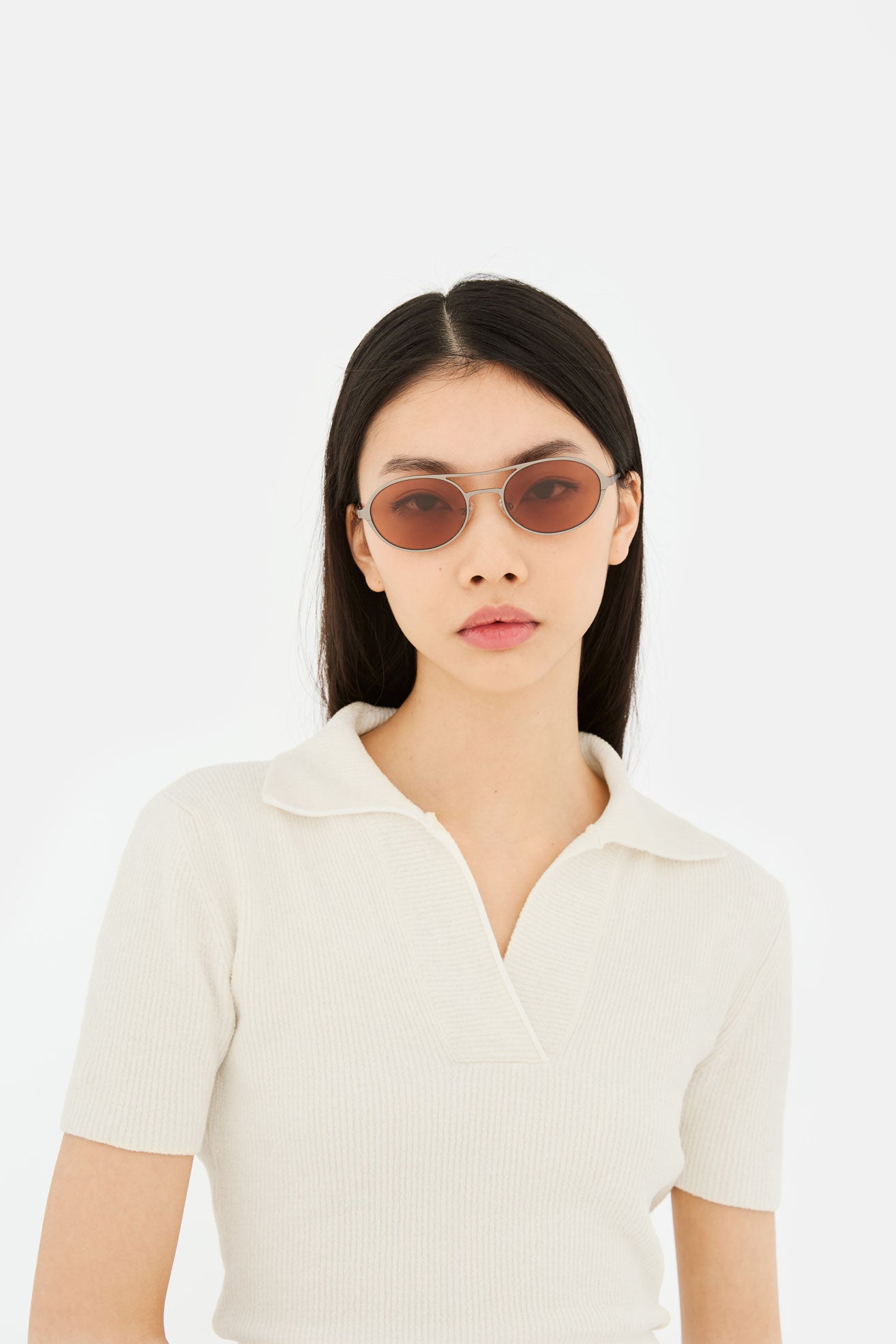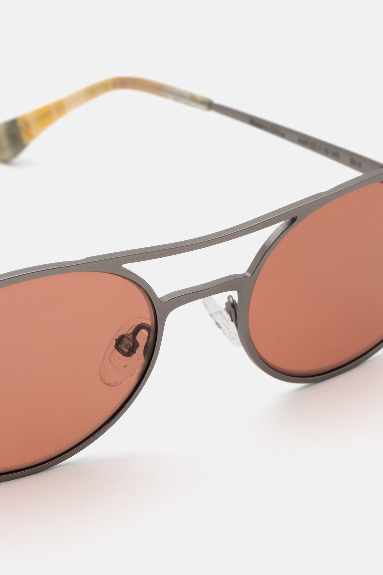 High grade metal milled from compressed multi-sheet with a gun-metal galvanic. Mounting playful blue mineral tempered glass lenses in base 2. Adjustable acetate temple tips for extra comfort and fit. Premium eyewear designed in Milano, Italy.