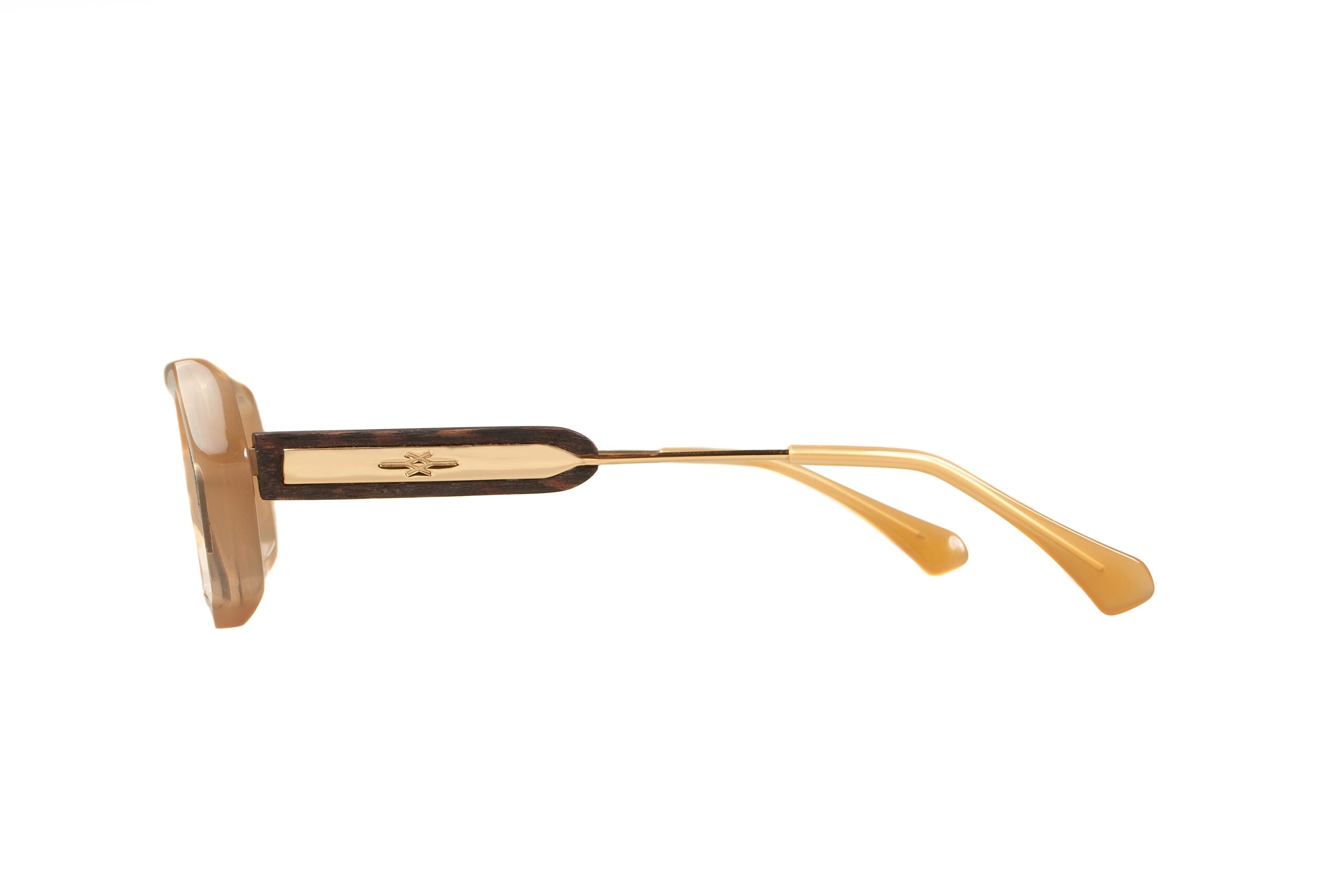 Materials: 50% Acetate 20% Wood 30% Metal; Details in gold; Size (lens-bridge-temple): 48-22-146; Made in Tunisia