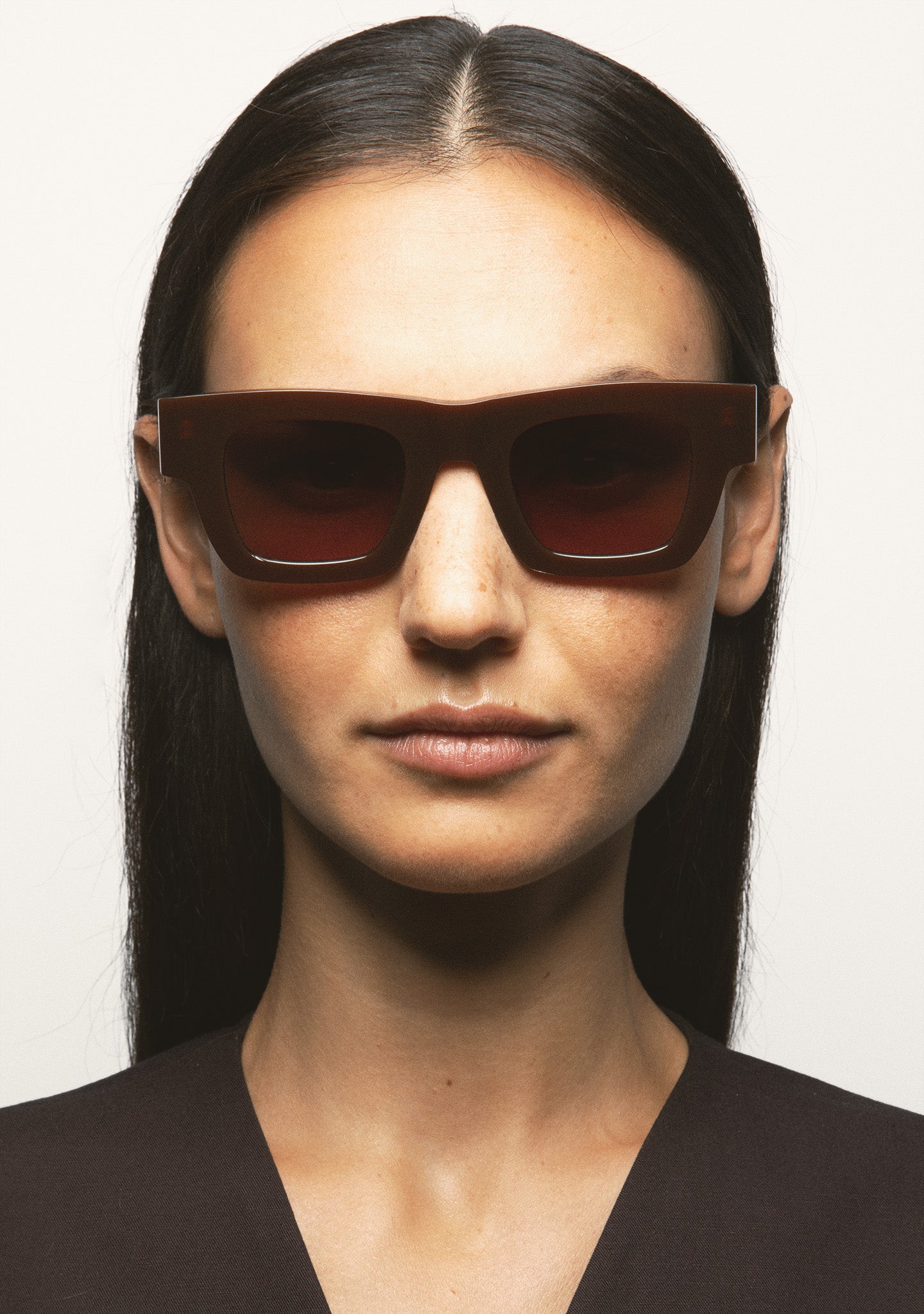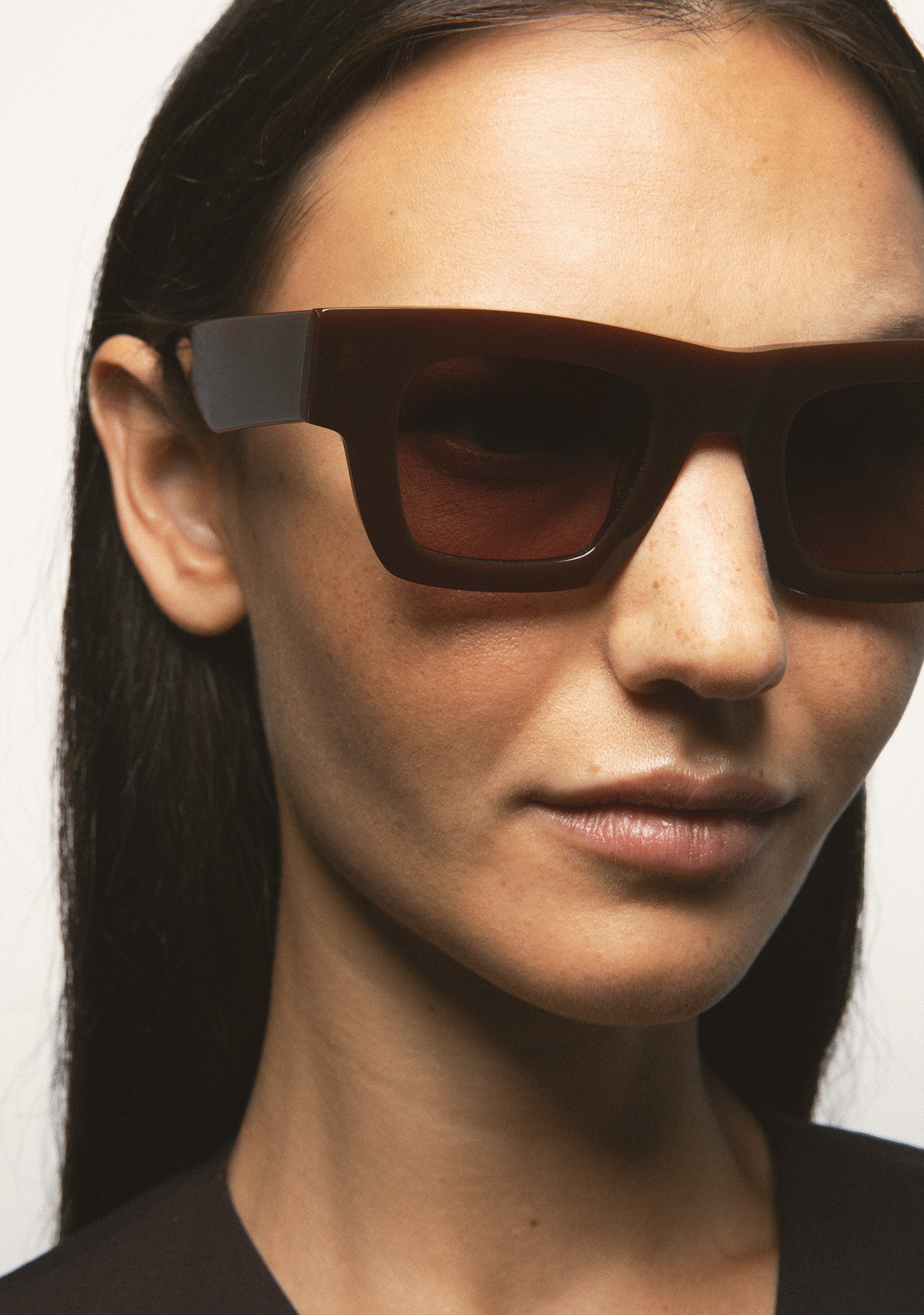 Rectangular Sunglasses. Black acetate front and temples. Brown photochromic lenses, base 2, with UV protection and anti-reflective coating. Category 1-3 lenses. Integrated acetate nose pads. Handmade.