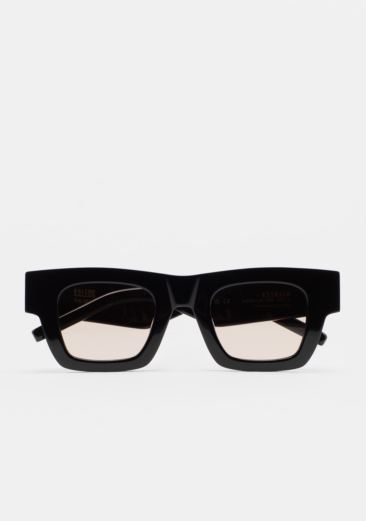 Rectangular Sunglasses. Black acetate front and temples. Brown photochromic lenses, base 2, with UV protection and anti-reflective coating. Category 1-3 lenses. Integrated acetate nose pads. Handmade.