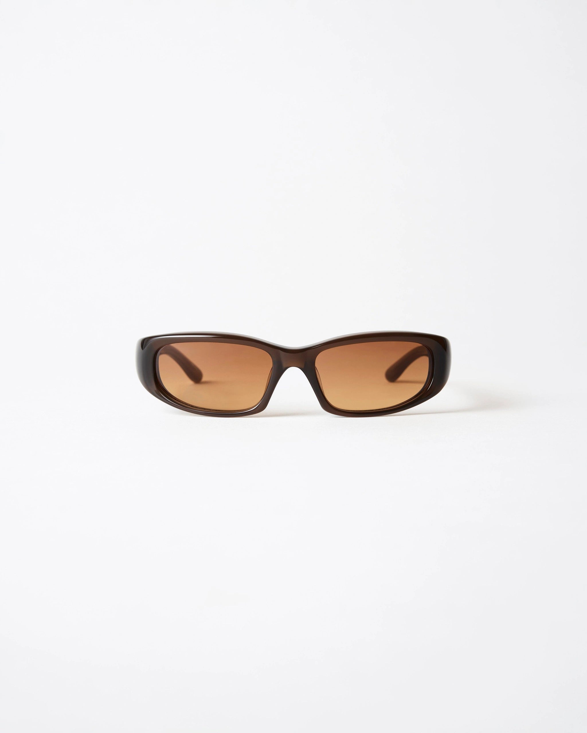 Sporty yet refined, Fade is designed with a slim oval shape and a softly rounded wraparound frame. Handcrafted in Italian acetate with a milky color effect that fades along the temples, signed with seasonal silver-metal logos on each side. Fitted with UV-protective CR39 lenses.