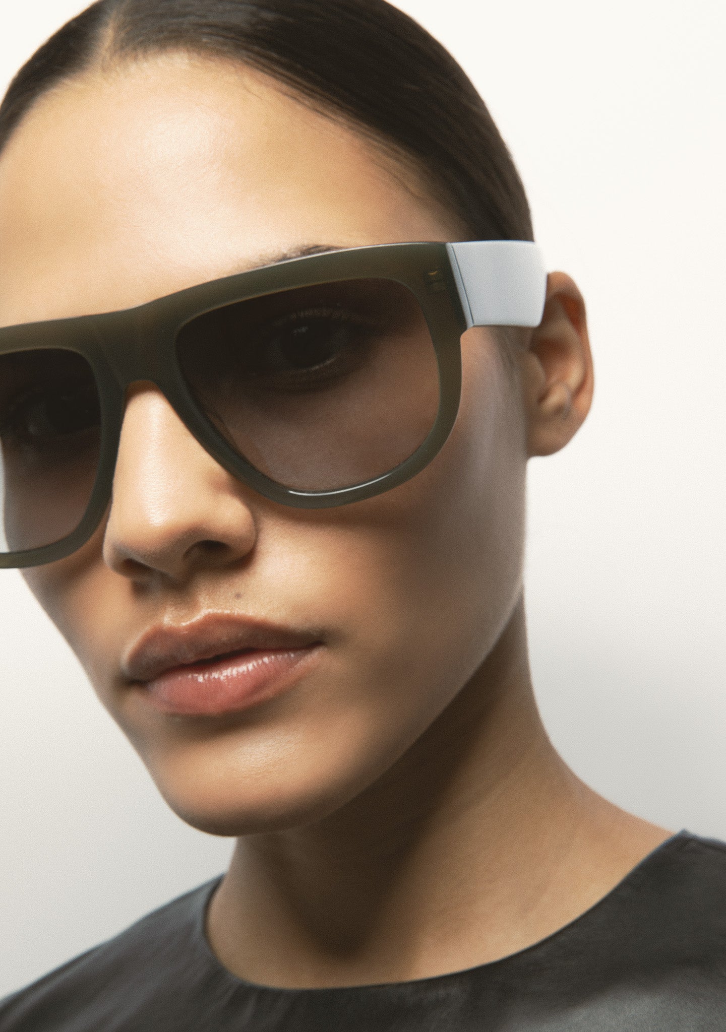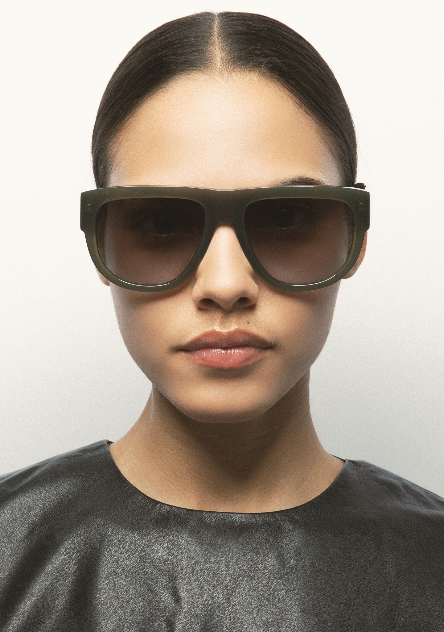 Aviator-shaped sunglasses. Front and temples made of translucent green acetate. Green gradient lens, category 2, with 100% UV protection and anti-reflective coating. Category 2 lens. Integrated acetate nose pads. Handmade.