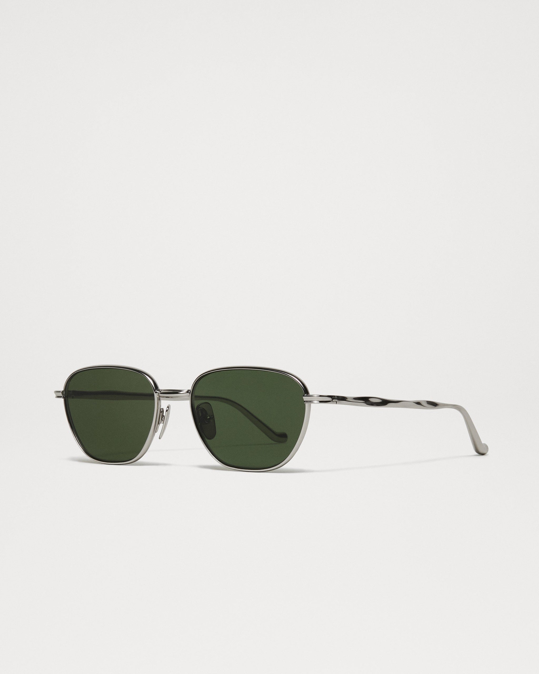 Polygon is a directional yet understated frame defined by a softly tapered geometric shape. Crafted from lightweight Japanese titanium, at once sleek and durable, and set with mineral lenses for superior clarity. Designed with custom temples that feature a sculptural expression, alluding to implosion, and finished with sharp-angled tips.