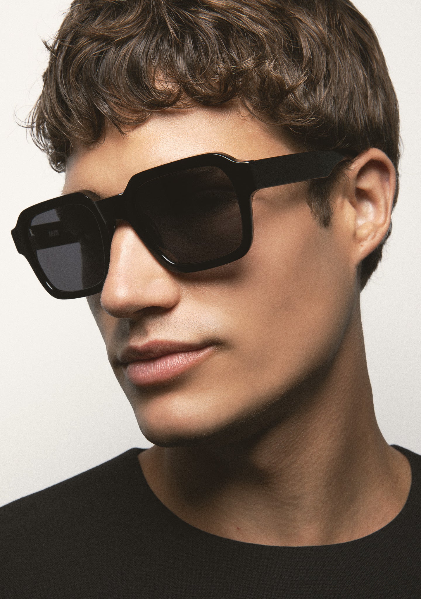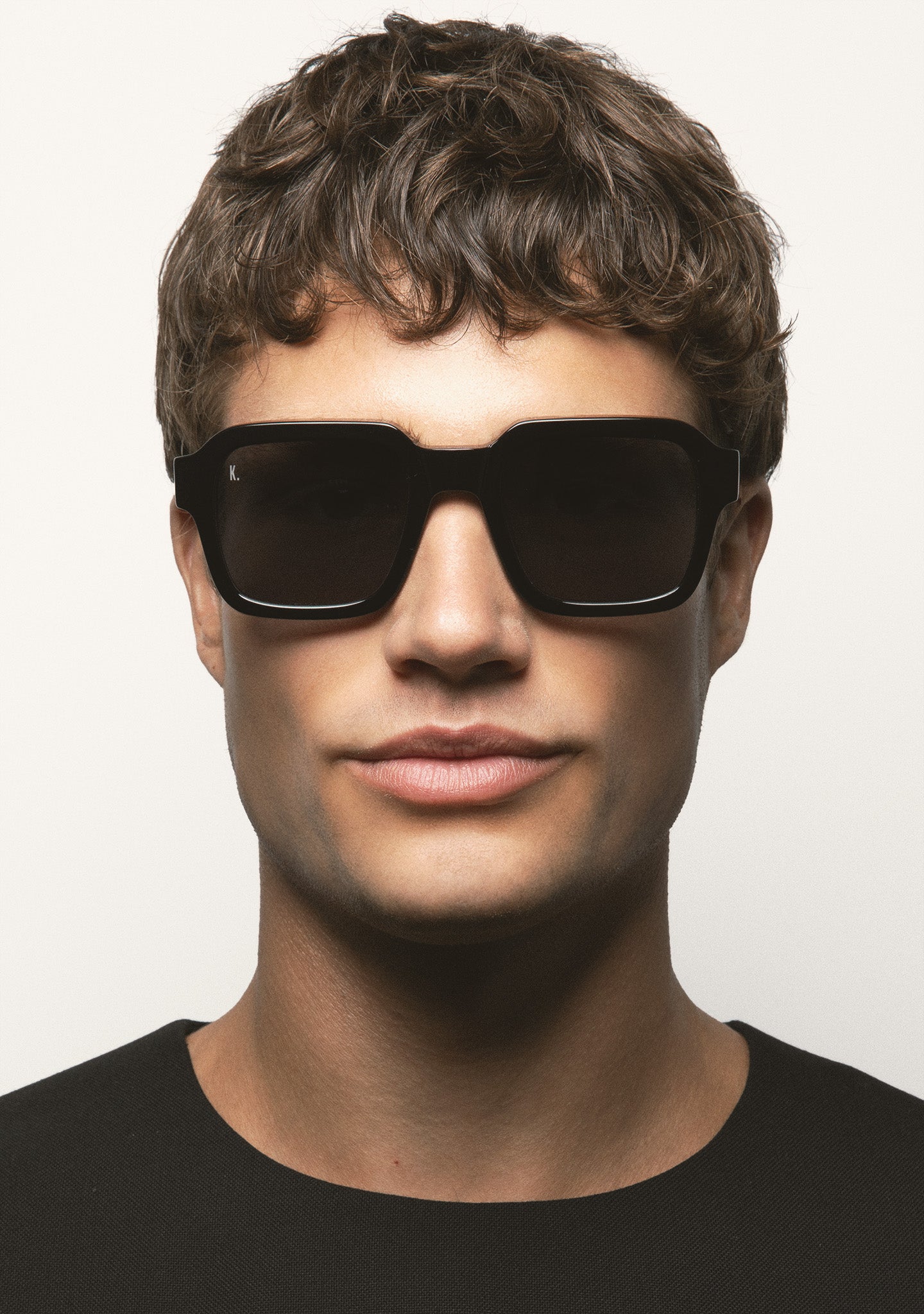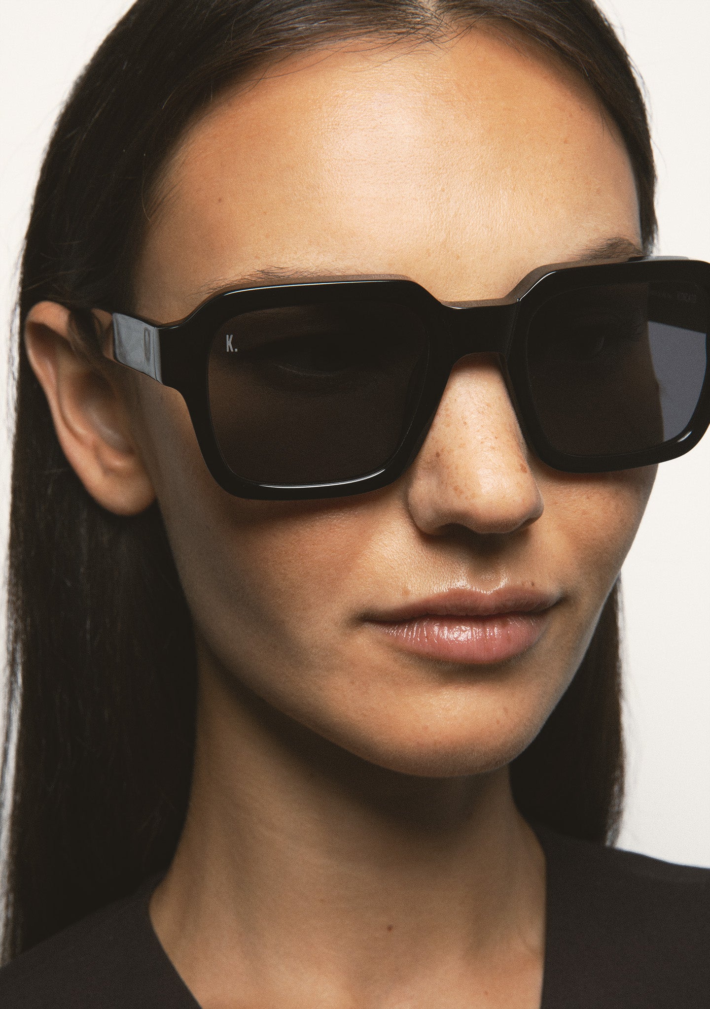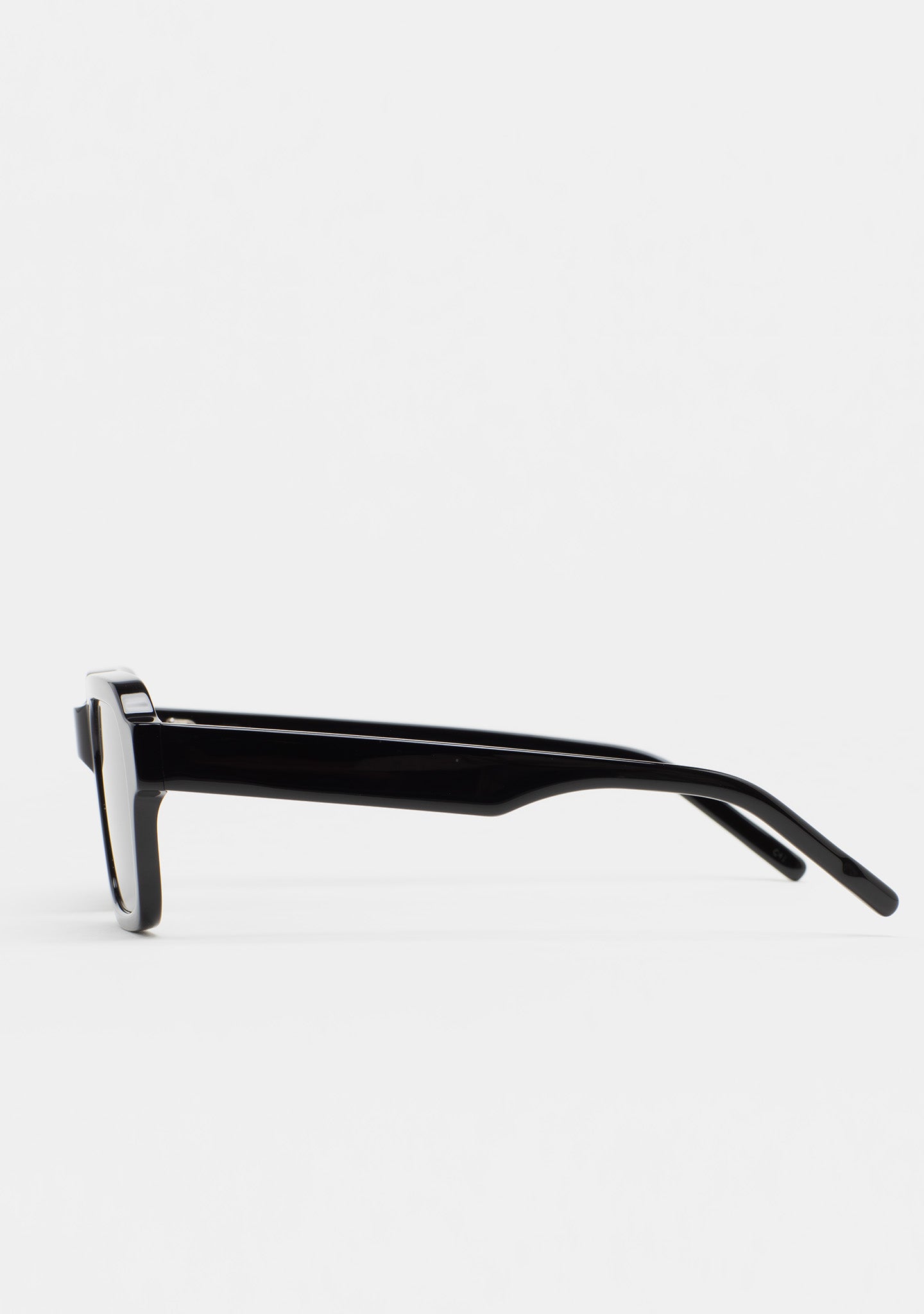 Square Sunglasses. Transparent acetate front and temples. Dark green lenses, base 2, with 100% UV protection and anti-reflective coating. Category 3 lenses. Integrated acetate nose pads. Handmade.