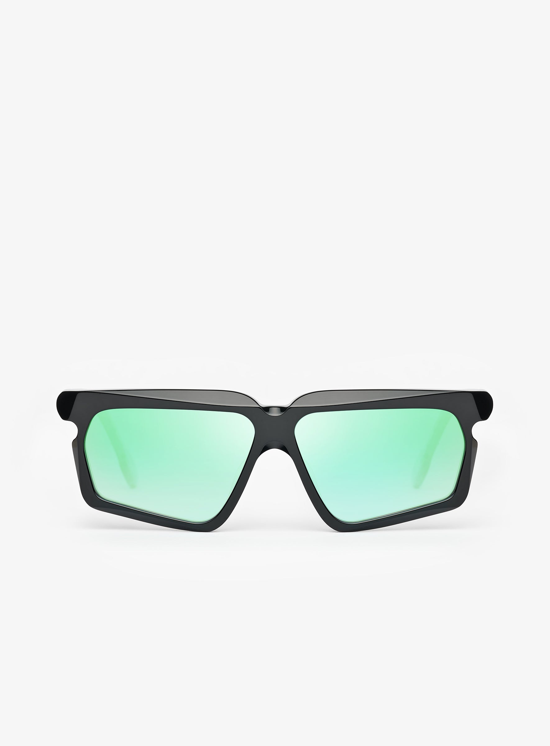 Inspired in cyberpunk, these high-tech shades bring to milled-acetate the taste of injected masks with a wide vision field typically made for sports. The name “Motoko” pays tribute to the fictional Japanese cyborg character of “Ghost in the Shell” based on the manga series written and illustrated by Masamune Shirow.