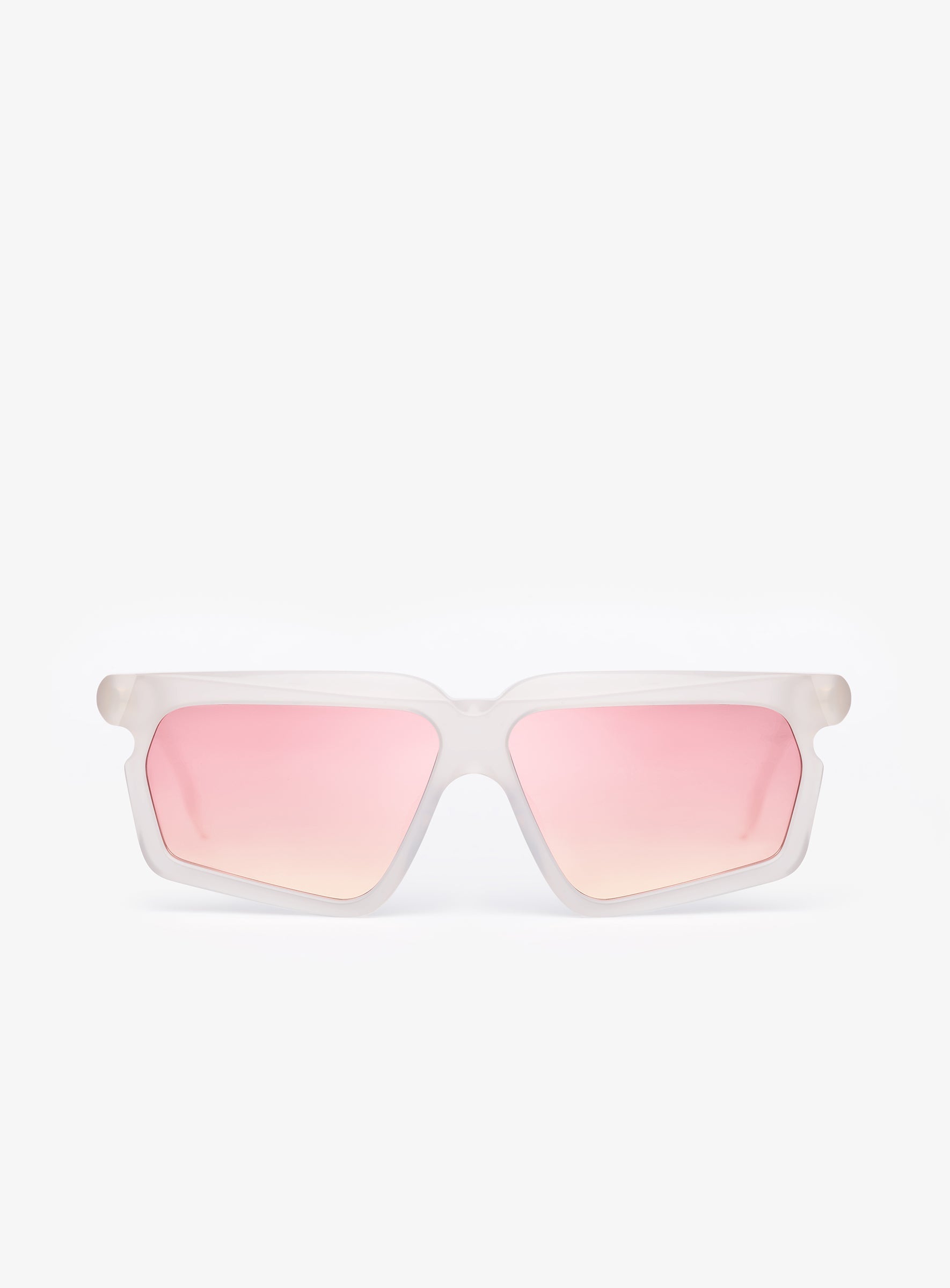 Inspired in cyberpunk, these high-tech shades bring to milled-acetate the taste of injected masks with a wide vision field typically made for sports. The name “Motoko” pays tribute to the fictional Japanese cyborg character of “Ghost in the Shell” based on the manga series written and illustrated by Masamune Shirow.