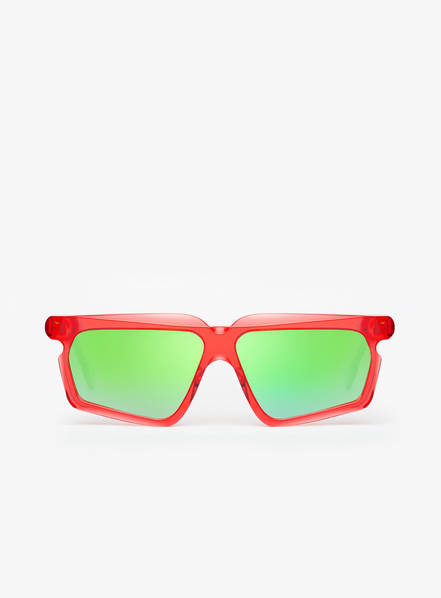 Inspired in cyberpunk, these high-tech shades bring to milled-acetate the taste of injected masks with a wide vision field typically made for sports. The name “Motoko” pays tribute to the fictional Japanese cyborg character of “Ghost in the Shell” based on the manga series written and illustrated by Masamune Shirow.