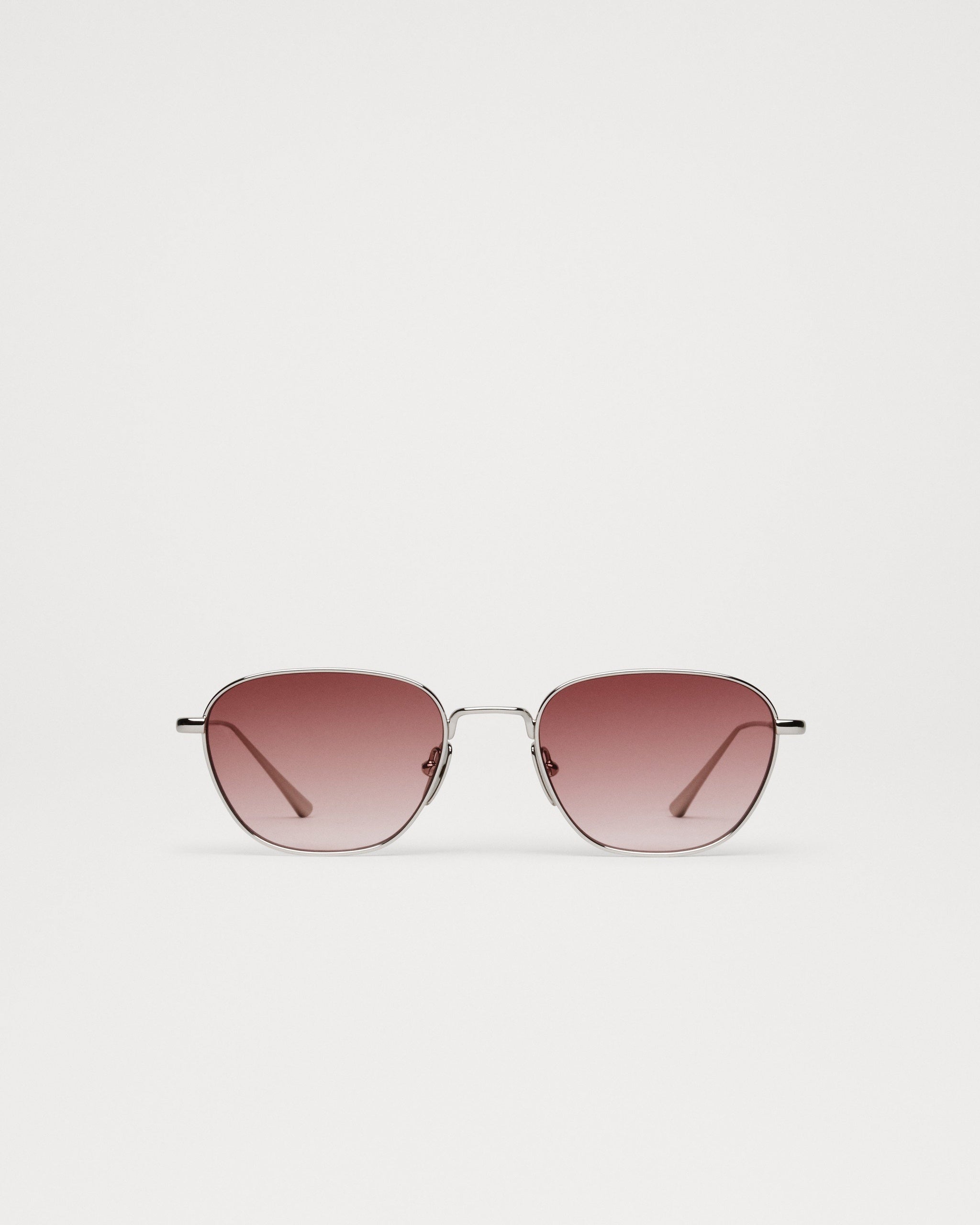 The silhouette of Polygon is shaped by a geometric tapered design. Handcrafted in shiny stainless steel with slim cylinder-shaped temples, the lightweight frame is fitted with UV-protective lenses.