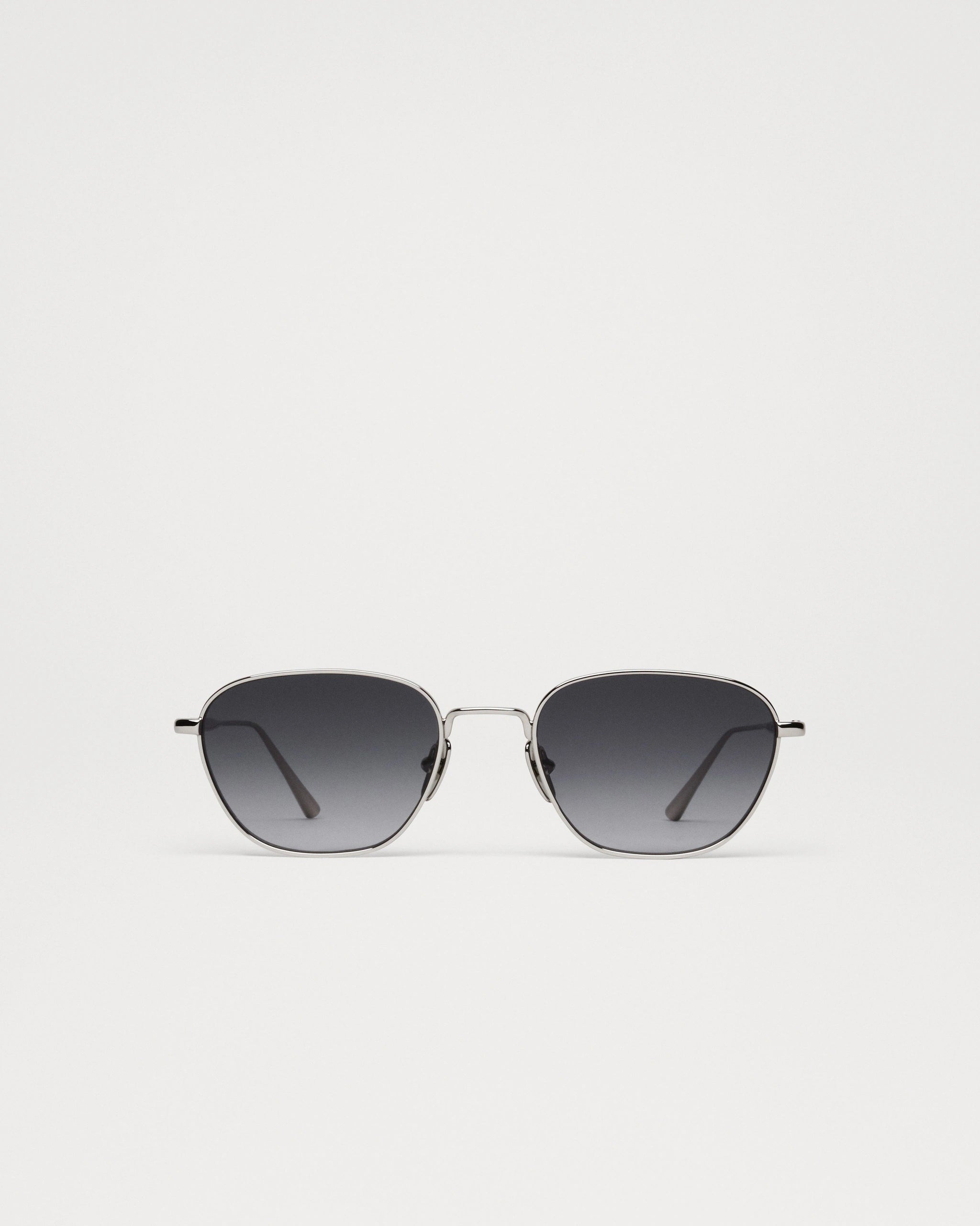 The silhouette of Polygon is shaped by a geometric tapered design. Handcrafted in shiny stainless steel with slim cylinder-shaped temples, the lightweight frame is fitted with UV-protective lenses.