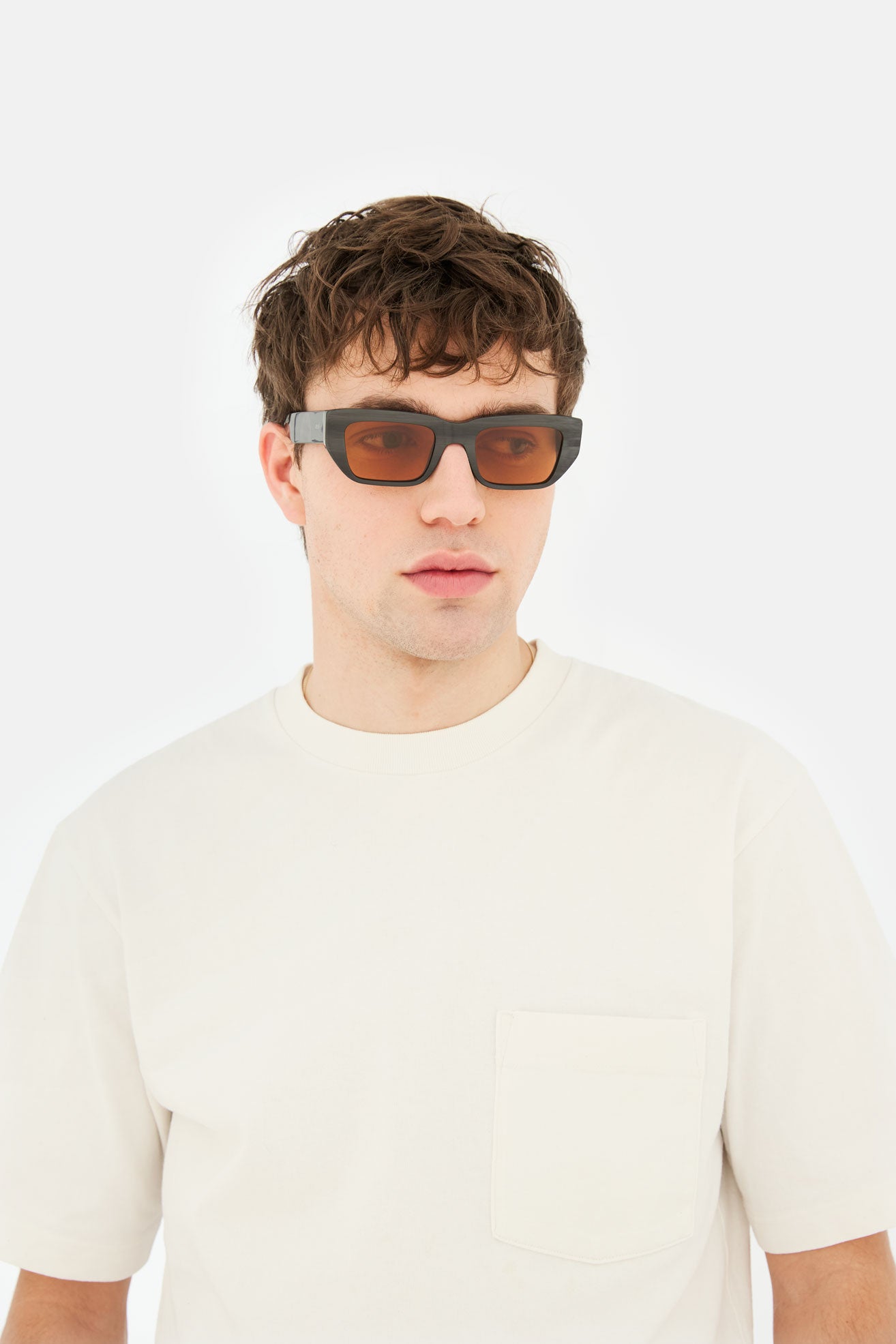 High grade Italian acetate in a unique striated black acetate. Mounting refined brown lenses by Zeiss in base 2. Premium eyewear handmade in Italy.