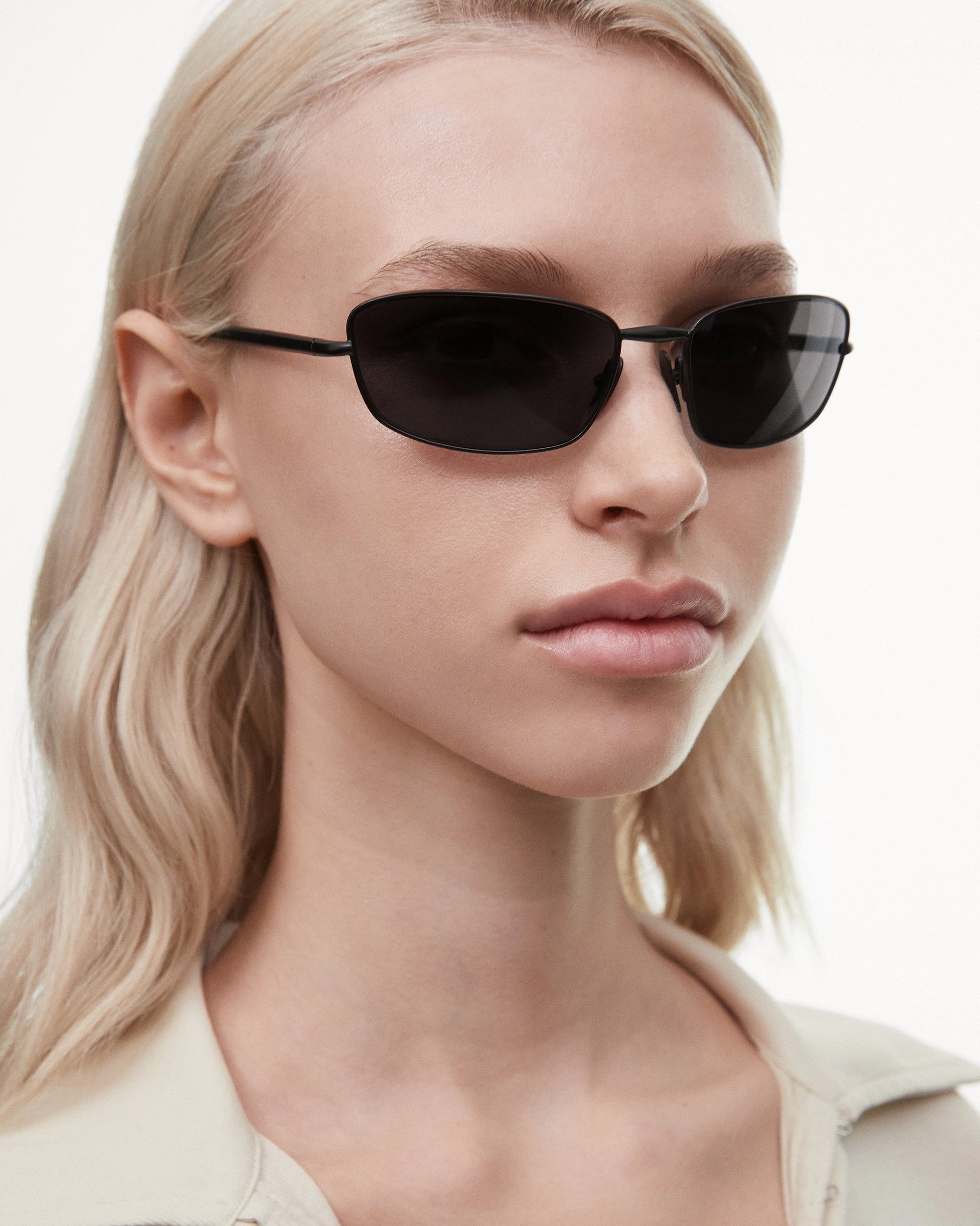 Turn-of-the-century minimalist and bold, Reach is a wraparound silhouette made in lightweight, matte black titanium. Fitted with UV-protective lenses that are polarized for maximum visual clarity and comfort. The streamlined cylinder-shaped temples are set with spring hinges that allow them to bend past ninety degrees for improved flexibility and an adjustable fit.