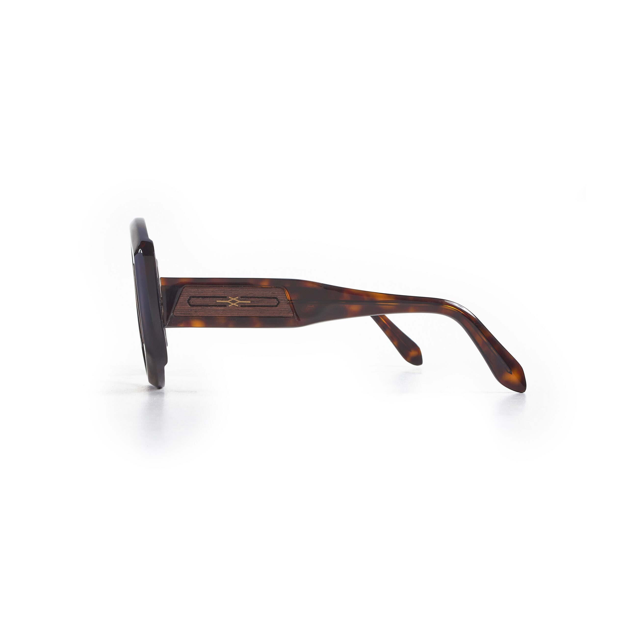 Materials: 90% Acetate 10% Wood; Details in gold; Size (lens-bridge-temple): 54-17-148; Made in Tunisia