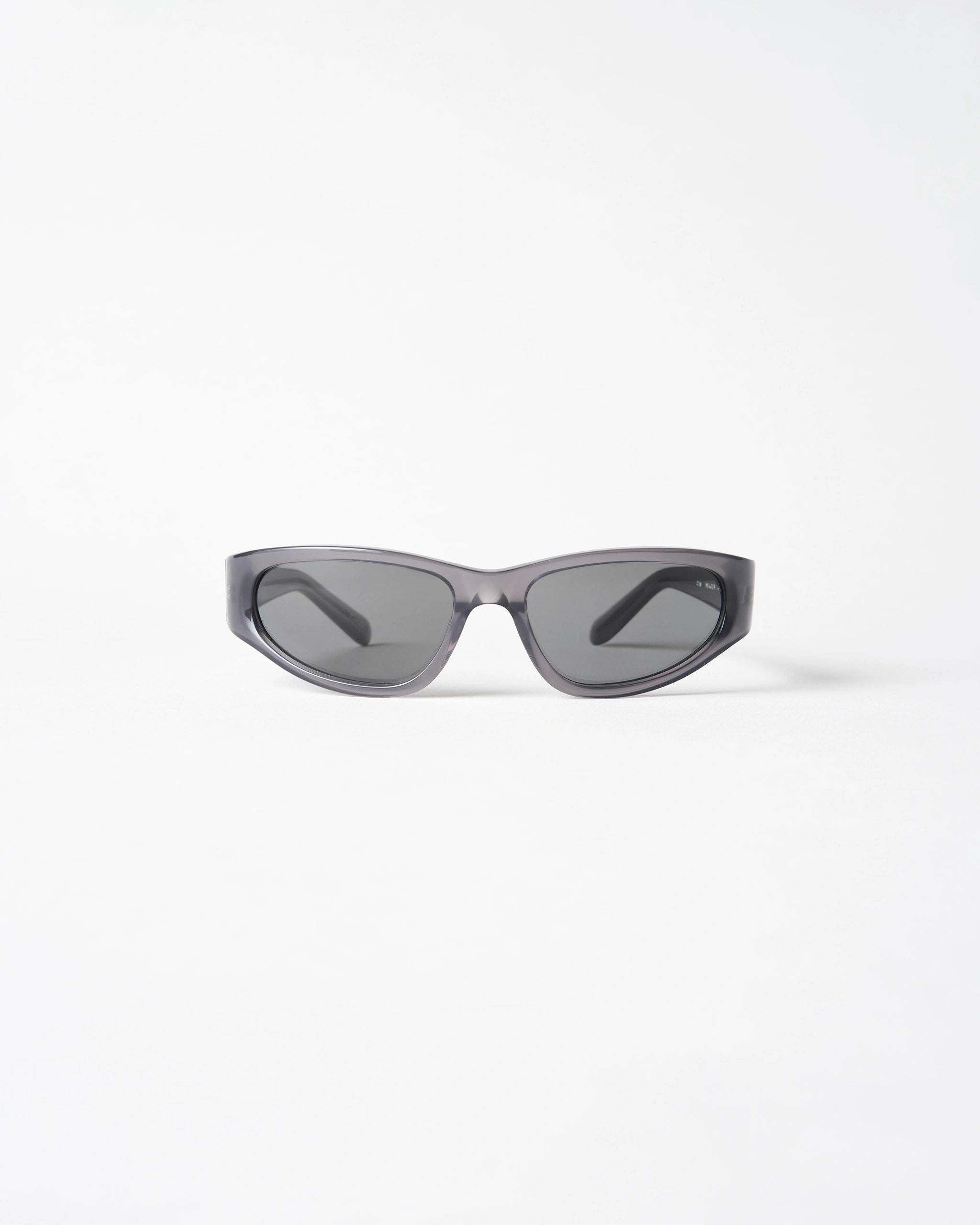 SLIM is an accelerated silhouette designed to evoke the 2000’s with wide temples that wraps around the face, signed with seasonal silver-metal logos. Handcrafted in glossy Italian acetate featuring dark CR39 lenses with 100% UVA+UVB protection