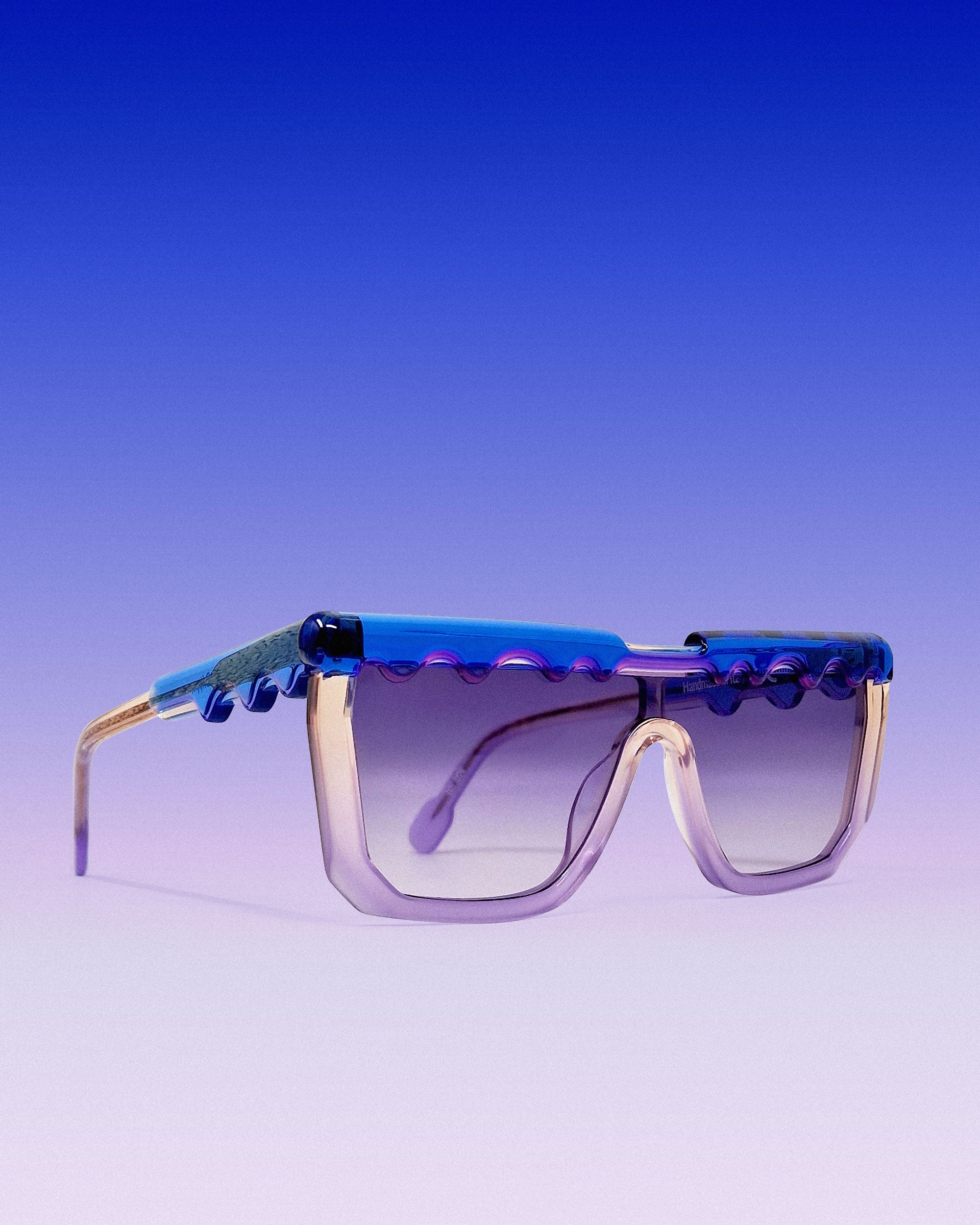 Gabriel designed The Dripper while researching the playful and chaotic world of dripping art and melting forms. The pop-art vibrancy transforms this piece into an experiment, where design and structure melt into a canvas of pure creativity. This acetate-laminated mask is the perfect frame for those who dare to let their style drip with personality.