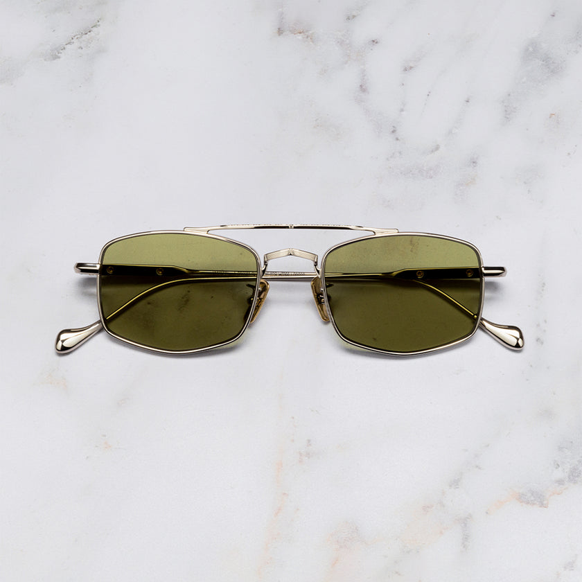 Signalling in a new era for Cutler and Gross X The Great Frog, this sunglass is handcrafted in Japan from pure titanium. The lightweight yet incredibly strong material has the capacity for unprecedented detail, which is apparent with this frame. An angular take on a navigator shape, it is augmented with an intricate stripe detail on the nose bridge and The Great Frog's Bones Link emblem on the temples.
