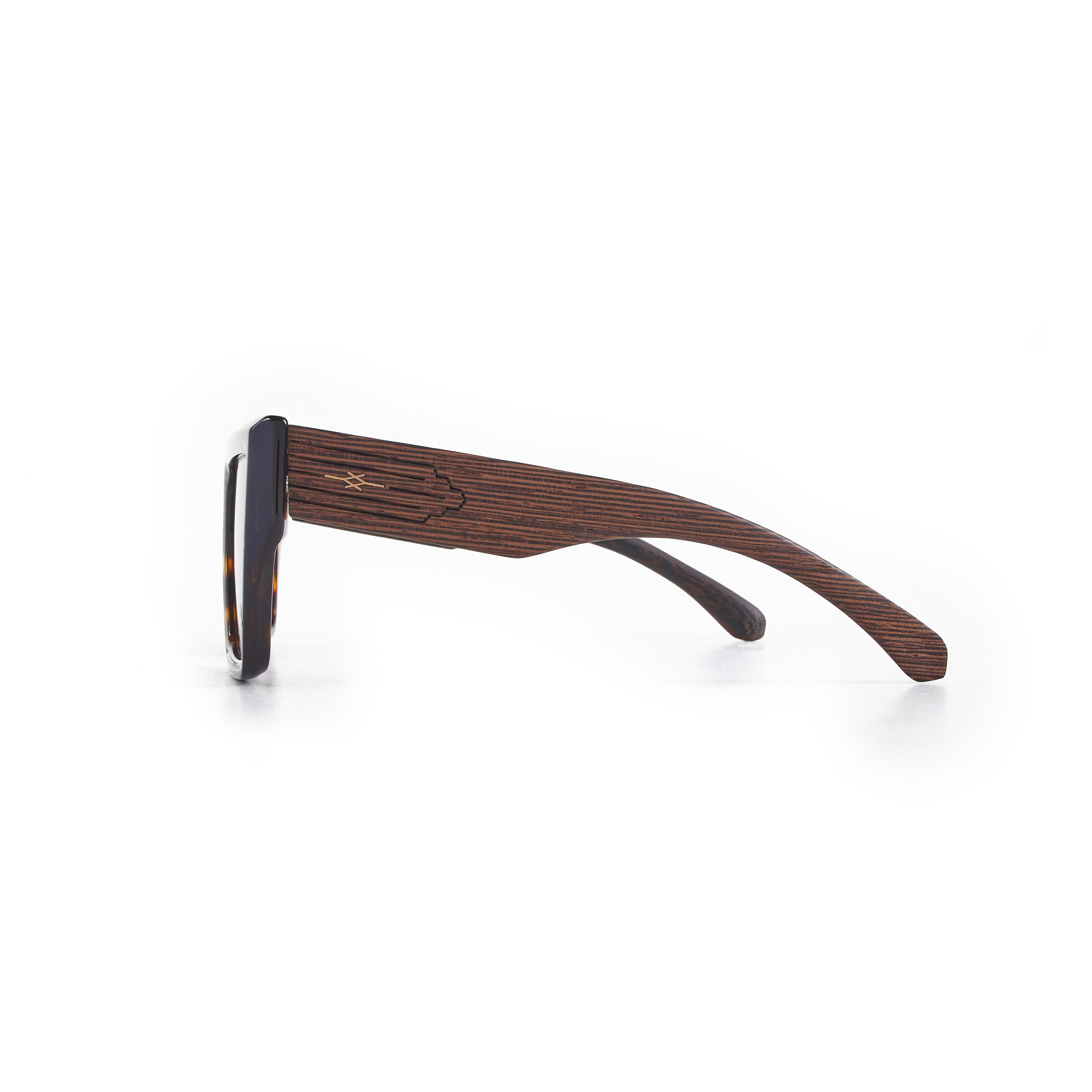 Materials: 50% Acetate 50% Wood; Details in gold; Size (lens-bridge-temple): 54-19-143; Made in Tunisia